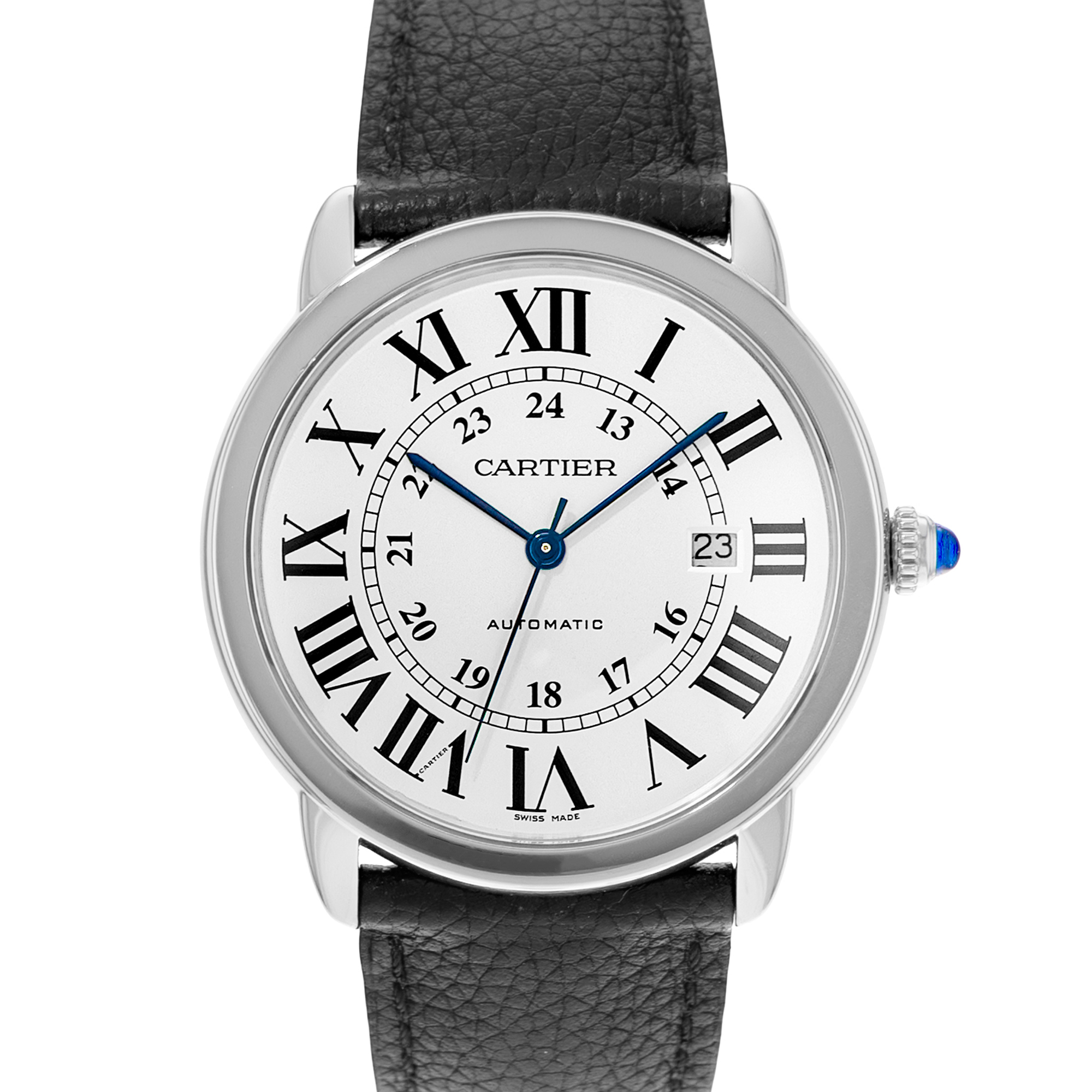 This Cartier Ronde Solo W6701010 has a silver roman numeral dial and a leather strap. This Cartier has undergone a thorough inspection of accuracy, functionality and condition at our Cartier certified service centre to determine the level of reconditioning required to meet our strict standards. It has also been checked against our records to ensure authenticity. All our watches have a 24-month warranty for your peace of mind.