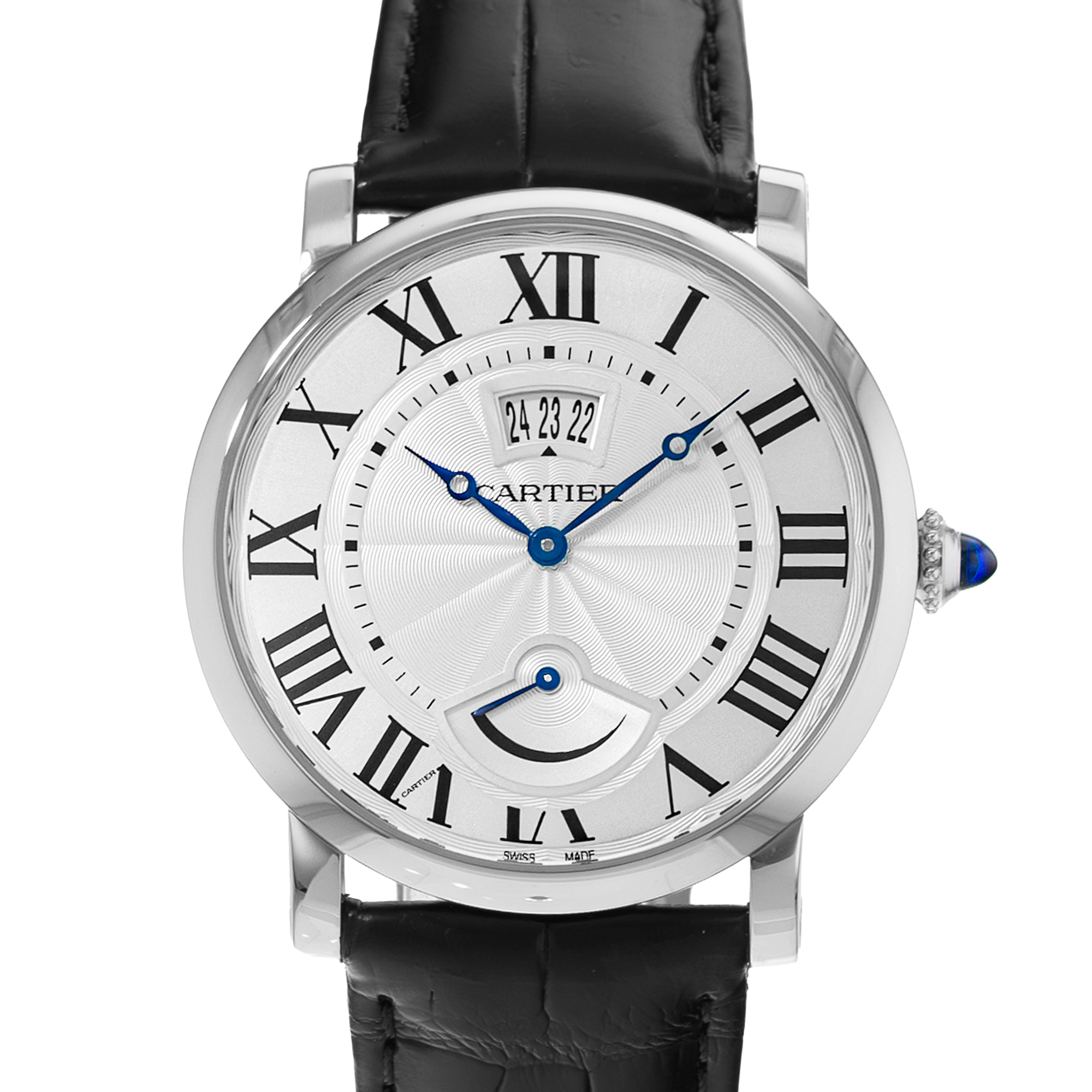 This Cartier Rotonde De Cartier W1556369 has a silver roman numeral dial and a leather strap. This Cartier has undergone a thorough inspection of accuracy, functionality and condition at our Cartier certified service centre to determine the level of reconditioning required to meet our strict standards. It has also been checked against our records to ensure authenticity. All our watches have a 24-month warranty for your peace of mind.