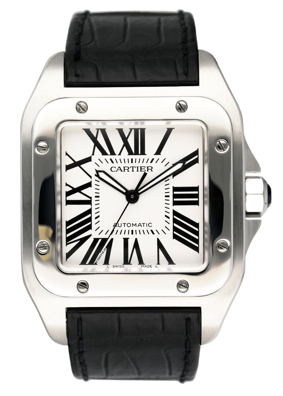 Invented in 1904, the Santos was the first ever men's wristwatch, originally invented for aviation pioneer Alberto Santos-Dumont to make it easier to check the time while flying. The watch was a game-changer in the industry thanks to Santos-Dumont's huge popularity and fame, and to celebrate the origins of the timepiece, Cartier produced a wonderful series of Santos watches called the Santos 100. Modern Santos watches still maintain the classic hallmarks of the original, including the rounded square case, Roman numeral hour markers and fully incorporated lugs.