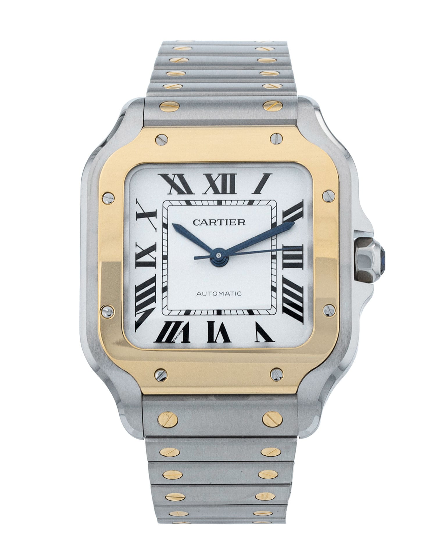 This Cartier Santos De Cartier W2SA0016 has a silver roman numeral dial and a bracelet strap. This Cartier has undergone a thorough inspection of accuracy, functionality and condition at our Cartier certified service centre to determine the level of reconditioning required to meet our strict standards. It has also been checked against our records to ensure authenticity. Our watches have a 24-month warranty for your peace of mind, in conjunction with any remaining manufacturer’s warranty from new or from service.