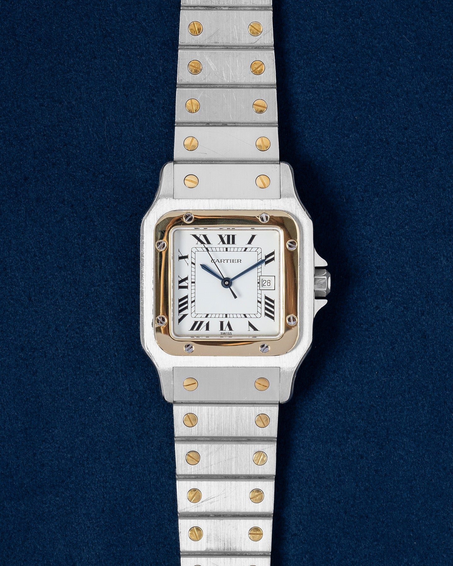 This Cartier Santos Galbee 1172961 has a white roman numeral dial and a bracelet strap. This Cartier has undergone a thorough inspection of accuracy, functionality and condition at our Cartier certified service centre to determine the level of reconditioning required to meet our strict standards. It has also been checked against our records to ensure authenticity. All our watches have a 24-month warranty for your peace of mind.
