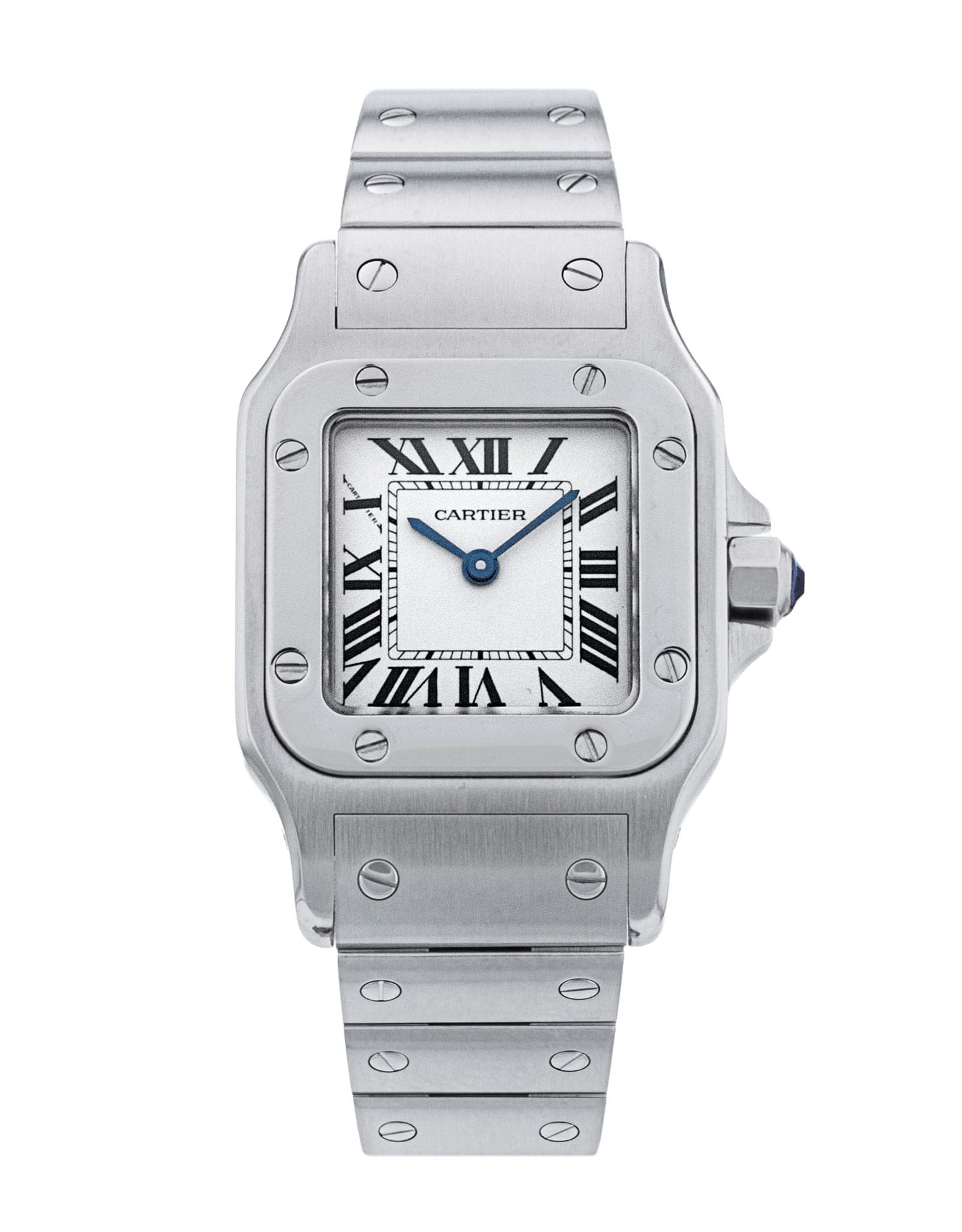 This Cartier Santos Galbee W20056D6 has a silver roman numeral dial and a bracelet strap. This Cartier has undergone a thorough inspection of accuracy, functionality and condition at our Cartier certified service centre to determine the level of reconditioning required to meet our strict standards. It has also been checked against our records to ensure authenticity. All our watches have a 24-month warranty for your peace of mind.