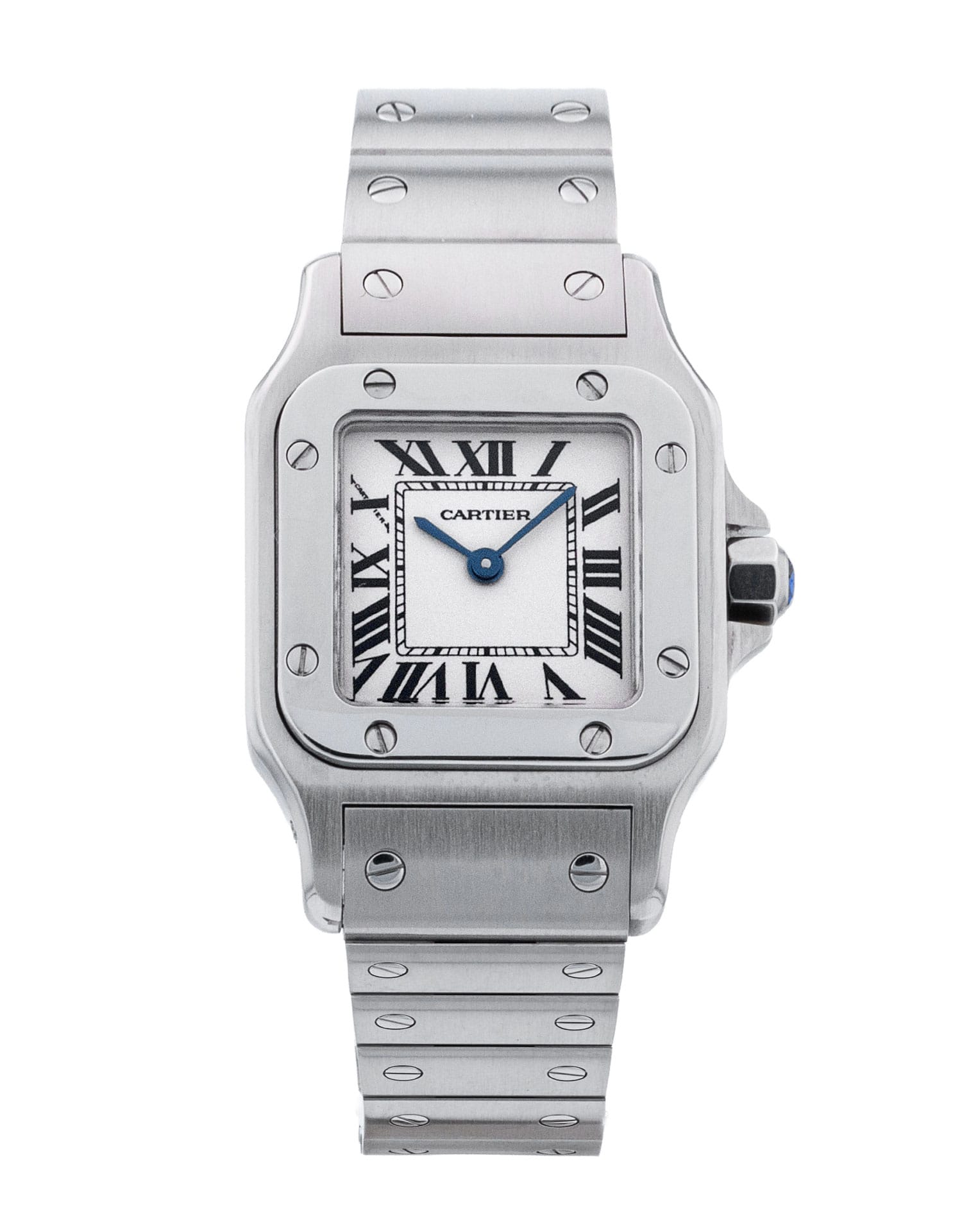This Cartier Santos Galbee W20056D6 has a silver roman numeral dial and a bracelet strap. This Cartier has undergone a thorough inspection of accuracy, functionality and condition at our Cartier certified service centre to determine the level of reconditioning required to meet our strict standards. It has also been checked against our records to ensure authenticity. All our watches have a 24-month warranty for your peace of mind.