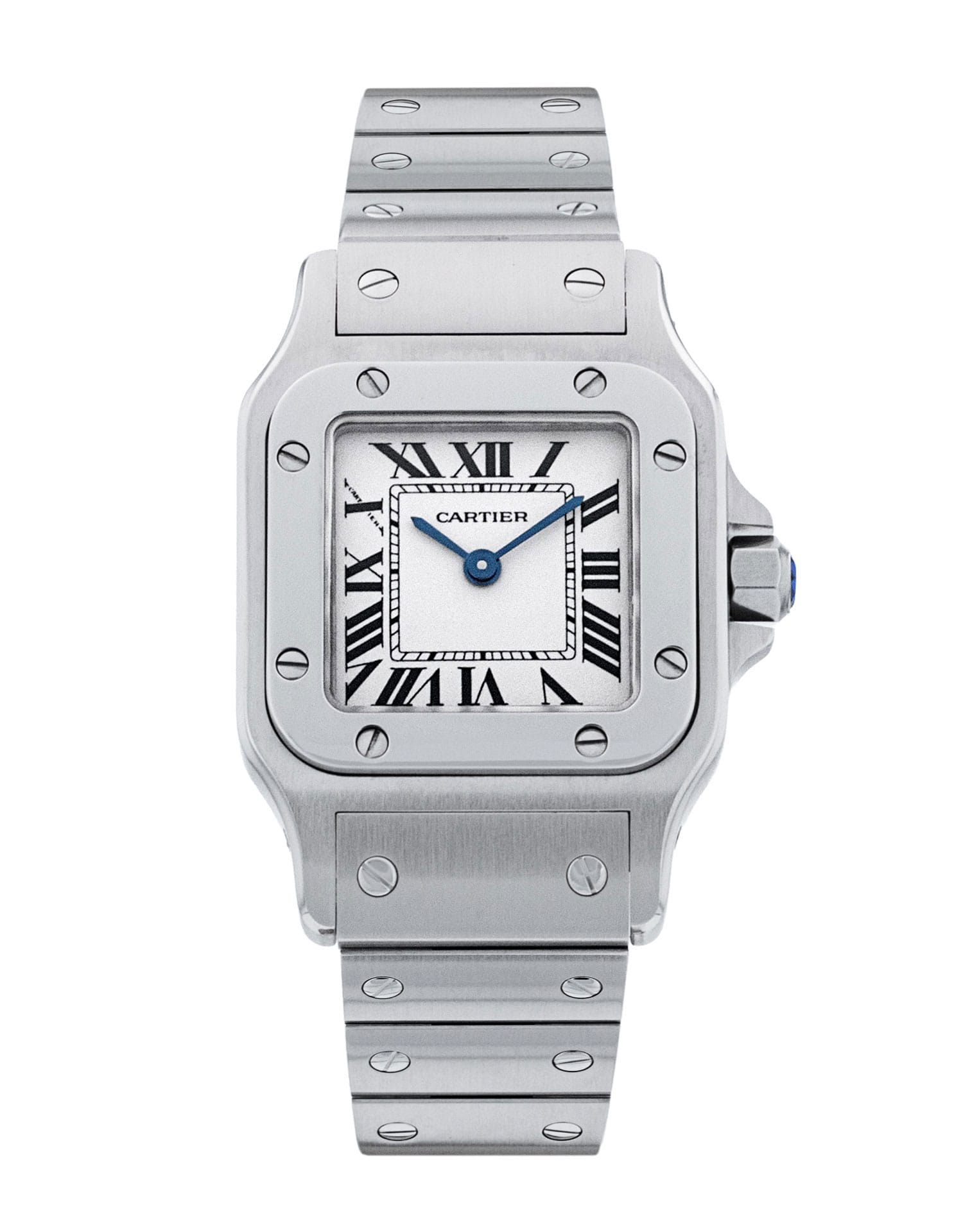 This Cartier Santos Galbee W20056D6 has a silver roman numeral dial and a bracelet strap. This Cartier has undergone a thorough inspection of accuracy, functionality and condition at our Cartier certified service centre to determine the level of reconditioning required to meet our strict standards. It has also been checked against our records to ensure authenticity. All our watches have a 24-month warranty for your peace of mind.
