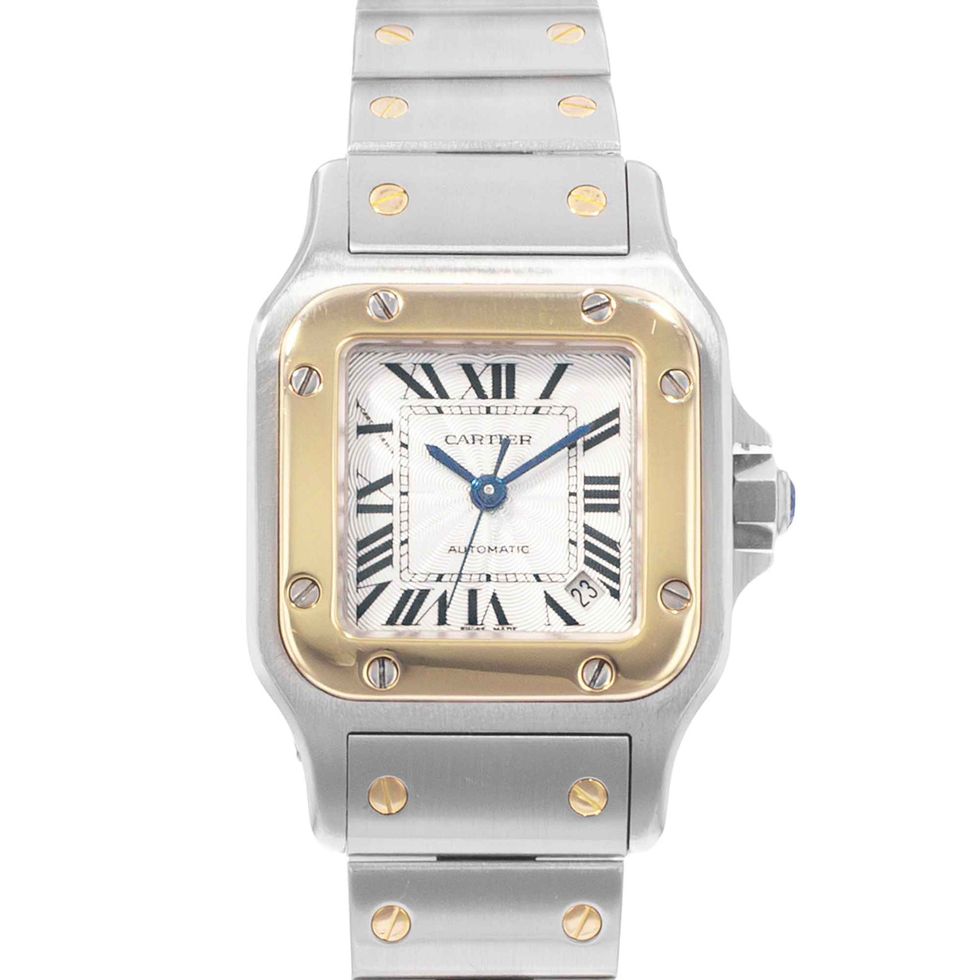 This Cartier Santos Galbee W20057C4 has a silver roman numeral dial and a bracelet strap. This Cartier has undergone a thorough inspection of accuracy, functionality and condition at our Cartier certified service centre to determine the level of reconditioning required to meet our strict standards. It has also been checked against our records to ensure authenticity. All our watches have a 24-month warranty for your peace of mind.