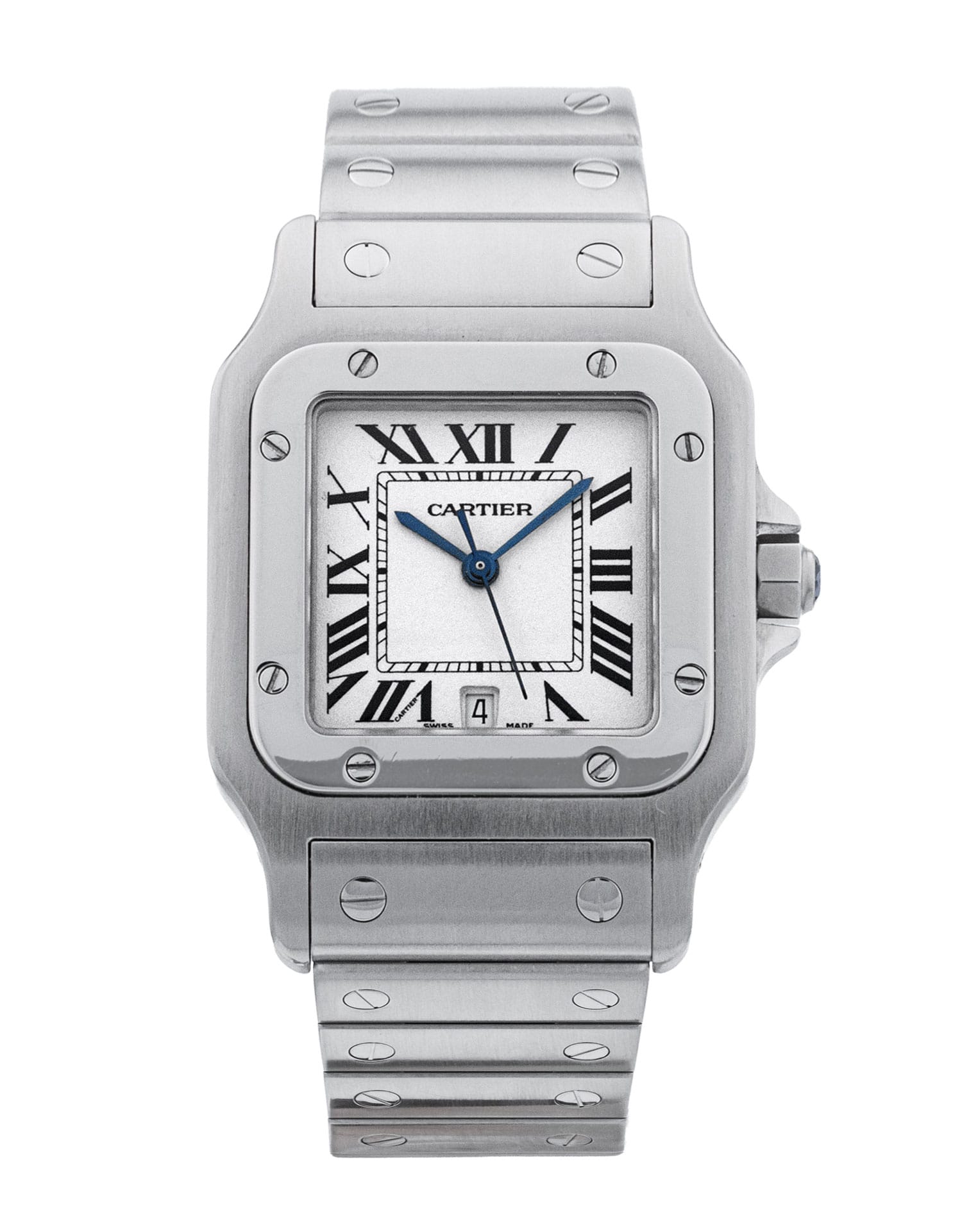 This Cartier Santos Galbee W20060D6 has a silver roman numeral dial and a bracelet strap. This Cartier has undergone a thorough inspection of accuracy, functionality and condition at our Cartier certified service centre to determine the level of reconditioning required to meet our strict standards. It has also been checked against our records to ensure authenticity. All our watches have a 24-month warranty for your peace of mind.