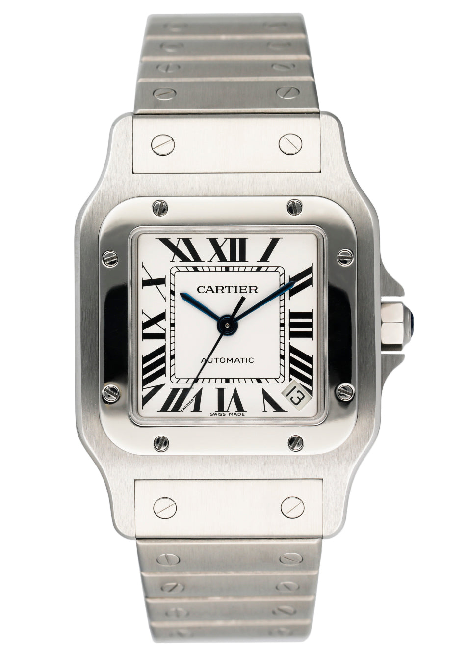 It was in 1904 that Louis Cartier gave a watch to his good friend and aviation pioneer Alberto Santos-Dumont that was designed to be worn on the wrist. The Santos watch was the first ever men's wristwatch, originally invented to make it easier to check the time while flying. It was a game-changer in the industry thanks to Santos-Dumont's huge popularity and fame, as well as a very early example of the iconic Art Deco style that would influence fashion and watchmaking for decades. The modern Santos watches maintain the classic hallmarks of the original, including the rounded square case, Roman numerals and fully incorporated lugs.
