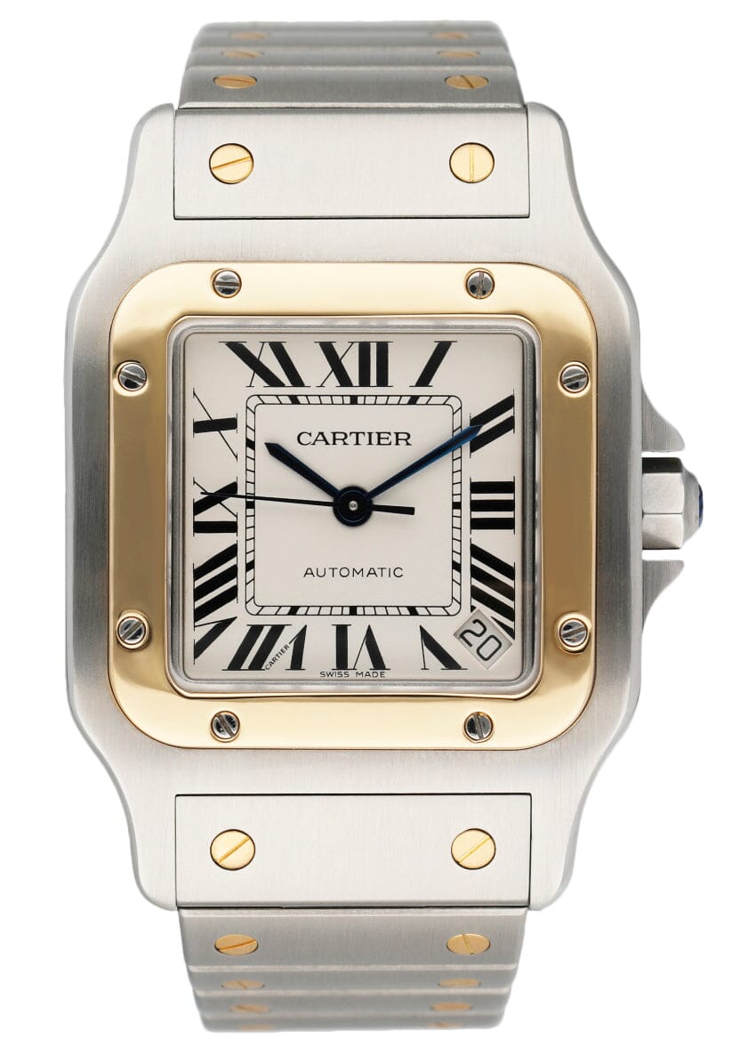 This Cartier Santos Galbee W20099C4 has a white roman numeral dial and a bracelet strap. This Cartier has undergone a thorough inspection of accuracy, functionality and condition at our Cartier certified service centre to determine the level of reconditioning required to meet our strict standards. It has also been checked against our records to ensure authenticity. All our watches have a 24-month warranty for your peace of mind.