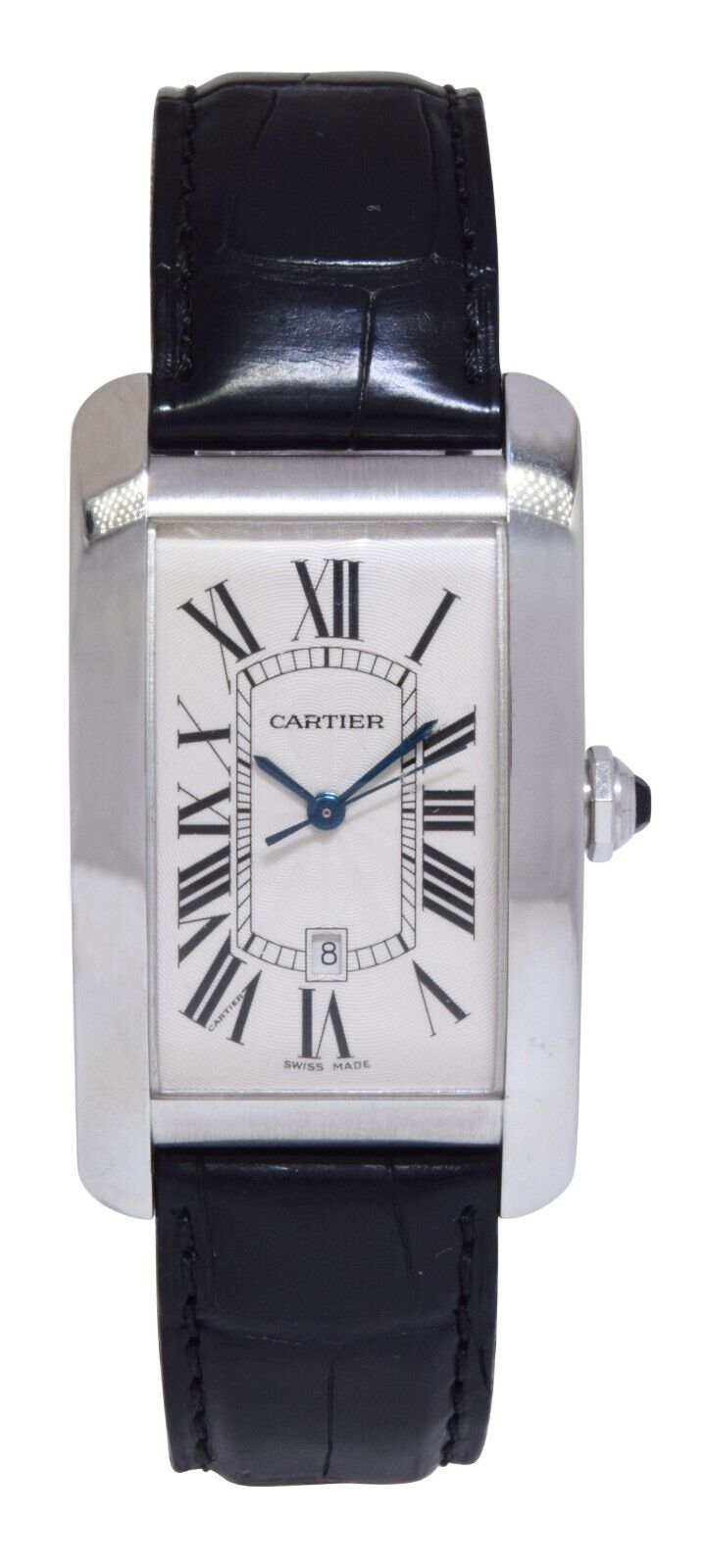 This Cartier Tank Americaine W2603256 has a silver roman numeral dial and a leather strap. This Cartier has undergone a thorough inspection of accuracy, functionality and condition at our Cartier certified service centre to determine the level of reconditioning required to meet our strict standards. It has also been checked against our records to ensure authenticity. All our watches have a 24-month warranty for your peace of mind.