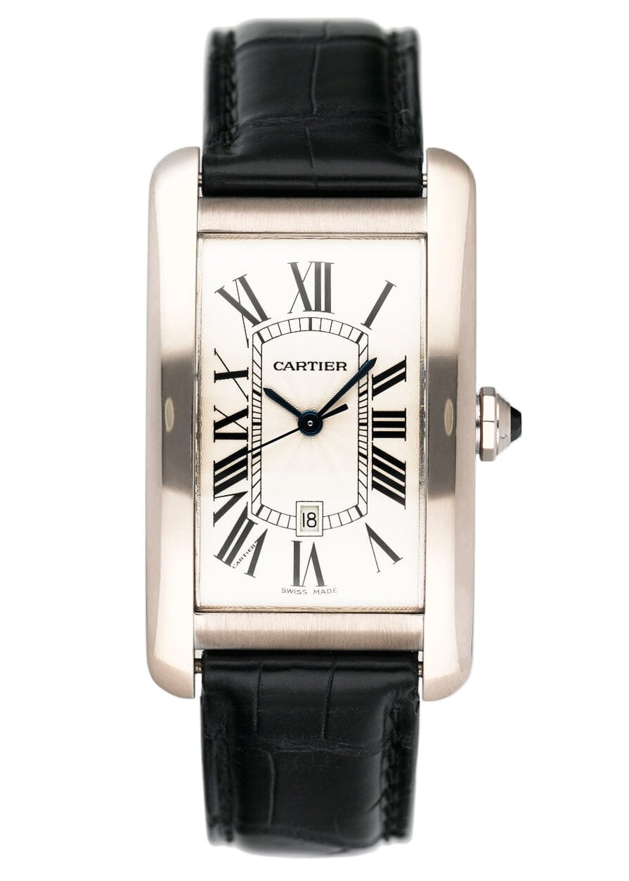 This Cartier Tank Americaine W2603256 has a silver roman numeral dial and a leather strap. This Cartier has undergone a thorough inspection of accuracy, functionality and condition at our Cartier certified service centre to determine the level of reconditioning required to meet our strict standards. It has also been checked against our records to ensure authenticity. All our watches have a 24-month warranty for your peace of mind.