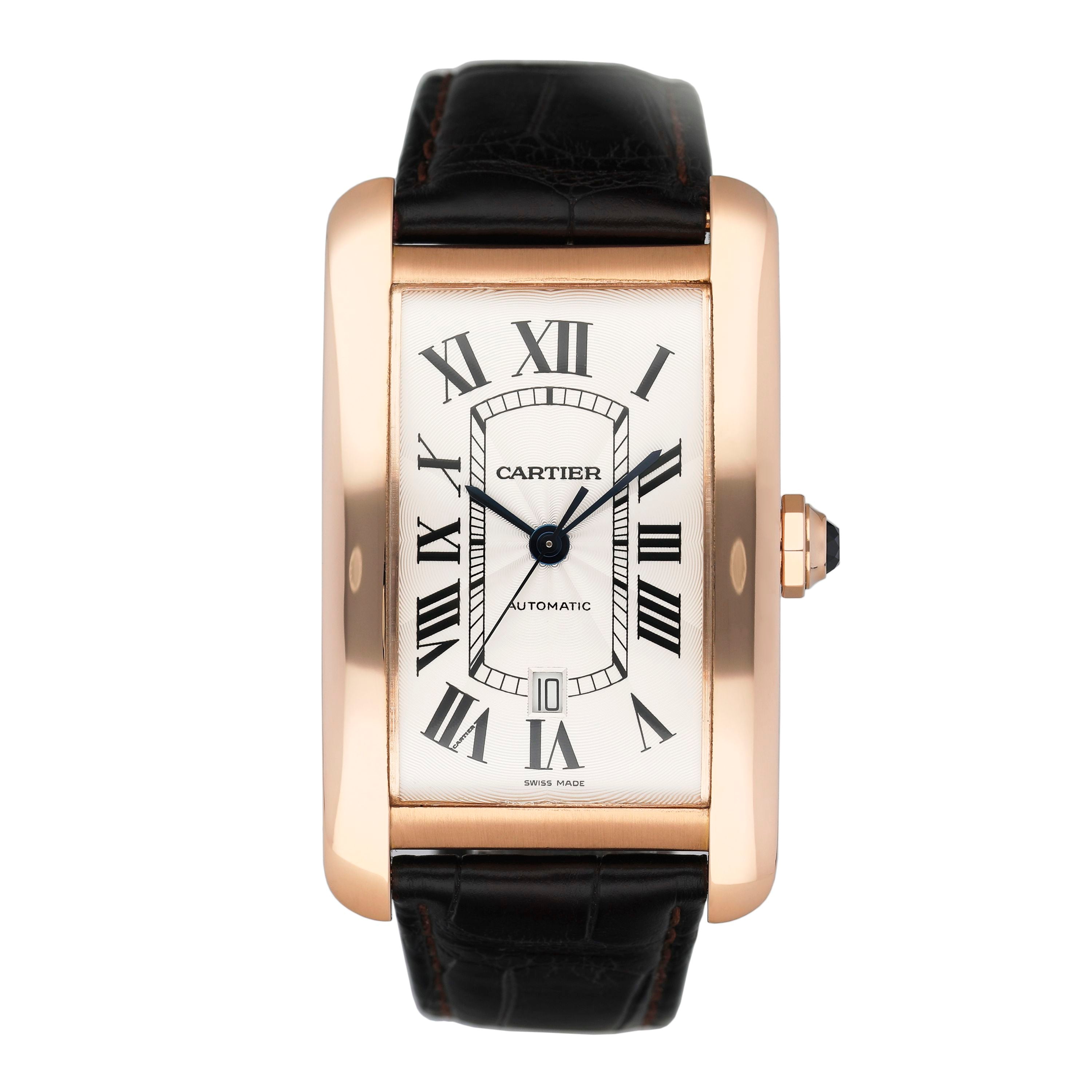 This Cartier Tank Americaine W2609856 has a silver roman numeral dial and a leather strap. This Cartier has undergone a thorough inspection of accuracy, functionality and condition at our Cartier certified service centre to determine the level of reconditioning required to meet our strict standards. It has also been checked against our records to ensure authenticity. All our watches have a 24-month warranty for your peace of mind.