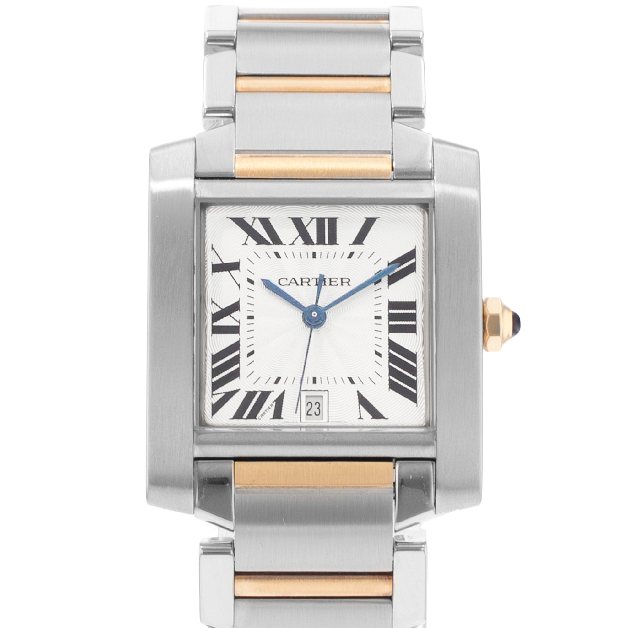 This Cartier Tank Francaise W51005Q4 has a silver roman numeral dial and a bracelet strap. This Cartier has undergone a thorough inspection of accuracy, functionality and condition at our Cartier certified service centre to determine the level of reconditioning required to meet our strict standards. It has also been checked against our records to ensure authenticity. All our watches have a 24-month warranty for your peace of mind.