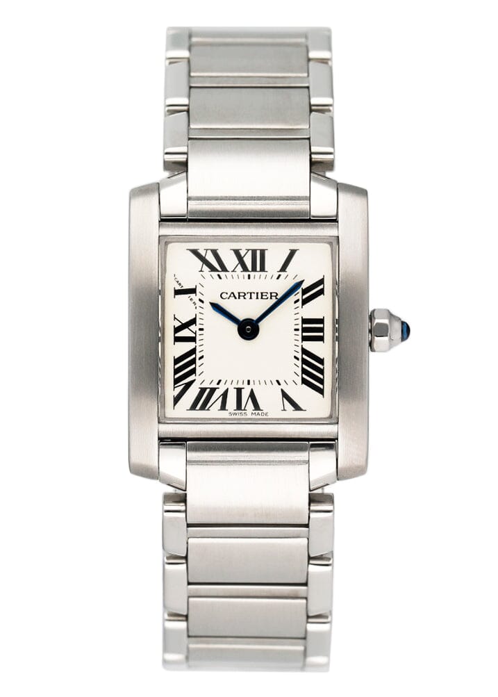 This Cartier Tank Francaise W51008Q3 has a silver roman numeral dial and a bracelet strap. This Cartier has undergone a thorough inspection of accuracy, functionality and condition at our Cartier certified service centre to determine the level of reconditioning required to meet our strict standards. It has also been checked against our records to ensure authenticity. All our watches have a 24-month warranty for your peace of mind.