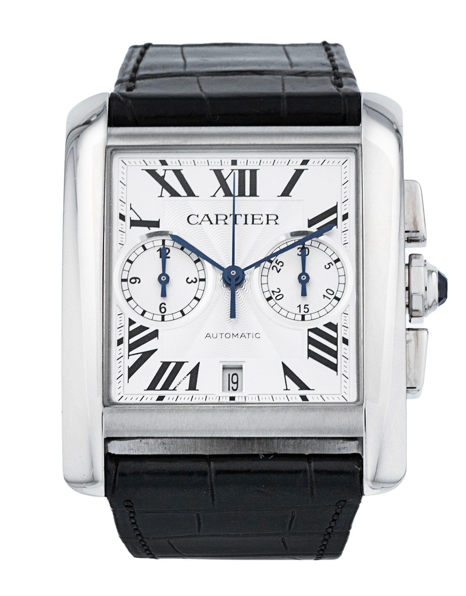 This Cartier Tank MC W5330007 has a silver roman numeral dial and a leather strap. This Cartier has undergone a thorough inspection of accuracy, functionality and condition at our Cartier certified service centre to determine the level of reconditioning required to meet our strict standards. It has also been checked against our records to ensure authenticity. All our watches have a 24-month warranty for your peace of mind.