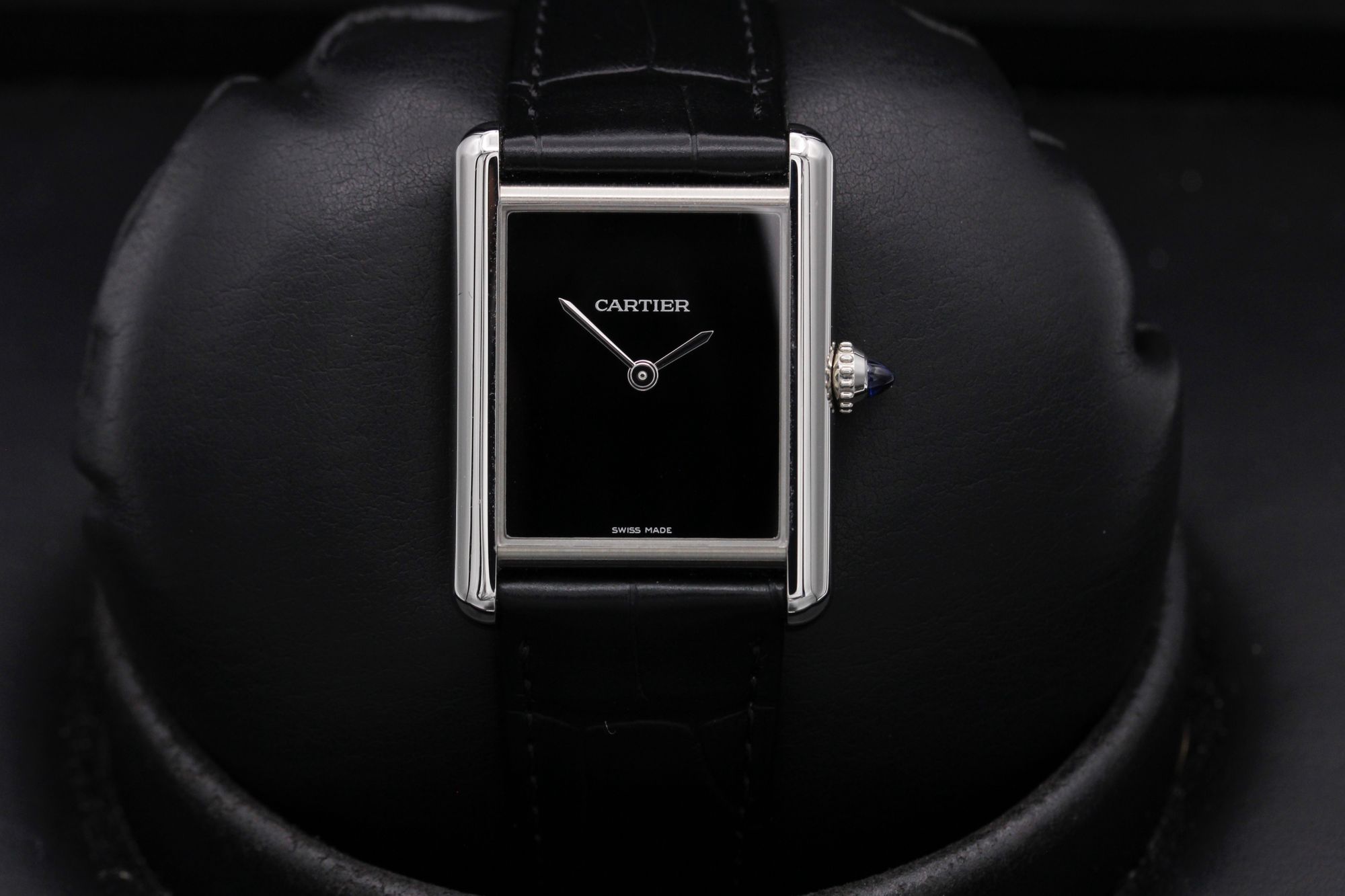 This Cartier Tank Must De Cartier WSTA0072 has a black dial and a leather strap. This Cartier has undergone a thorough inspection of accuracy, functionality and condition at our Cartier certified service centre to determine the level of reconditioning required to meet our strict standards. It has also been checked against our records to ensure authenticity. All our watches have a 24-month warranty for your peace of mind.