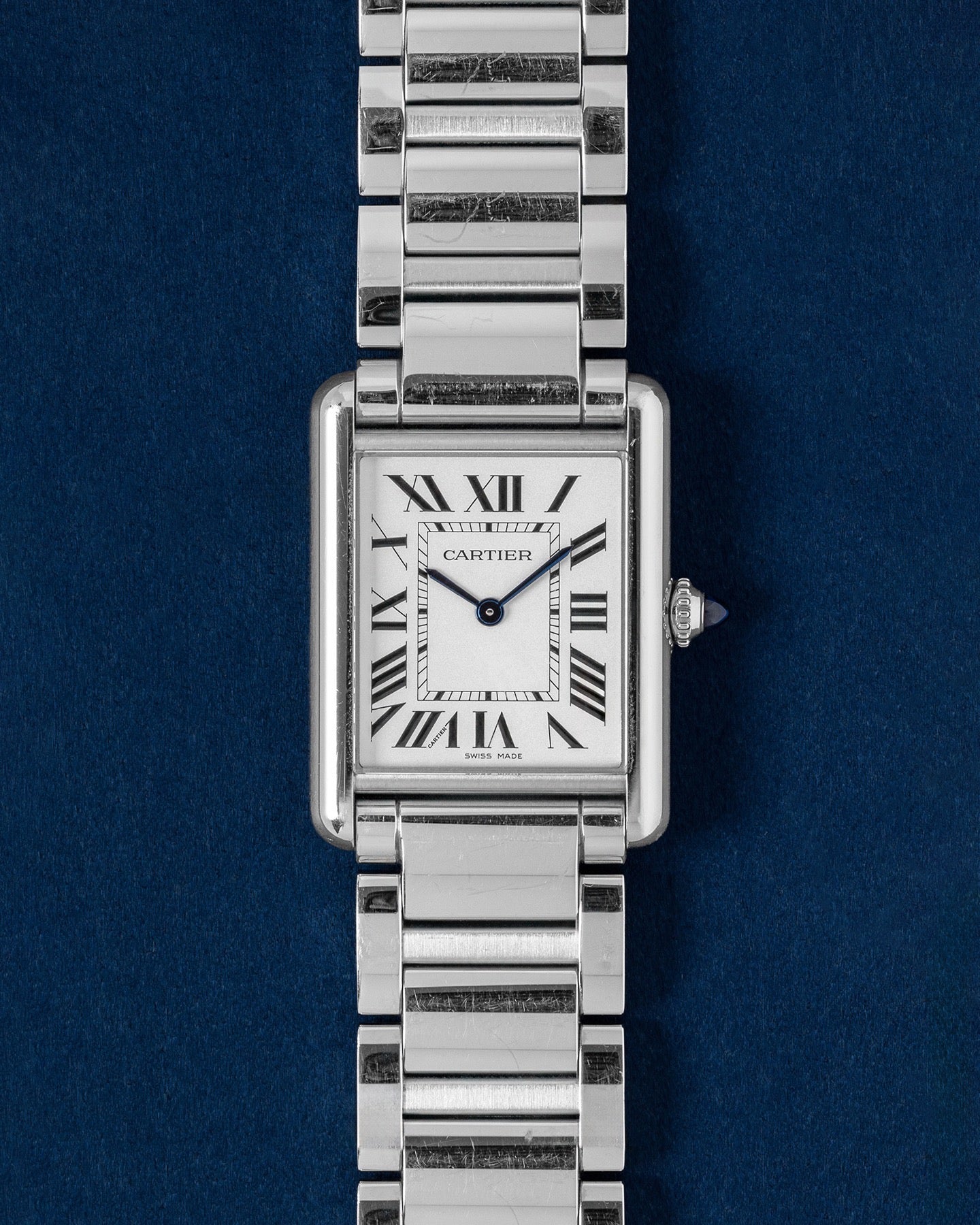 This Cartier Tank Must De Cartier WSTA0106 has a silver roman numeral dial and a bracelet strap. This Cartier has undergone a thorough inspection of accuracy, functionality and condition at our Cartier certified service centre to determine the level of reconditioning required to meet our strict standards. It has also been checked against our records to ensure authenticity. Our watches have a 24-month warranty for your peace of mind, in conjunction with any remaining manufacturer’s warranty from new or from service.