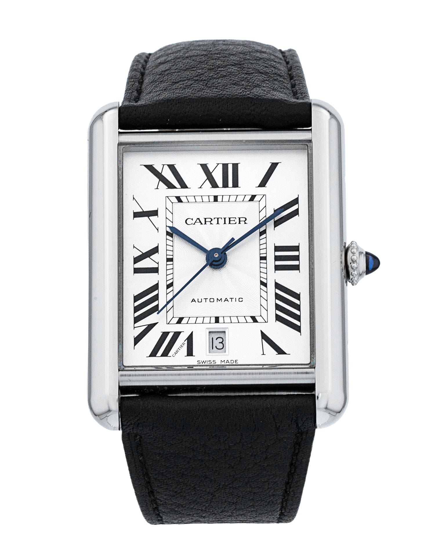 This Cartier Tank Must WSTA0040 has a silver roman numeral dial and a leather strap. This Cartier has undergone a thorough inspection of accuracy, functionality and condition at our Cartier certified service centre to determine the level of reconditioning required to meet our strict standards. It has also been checked against our records to ensure authenticity. All our watches have a 24-month warranty for your peace of mind.