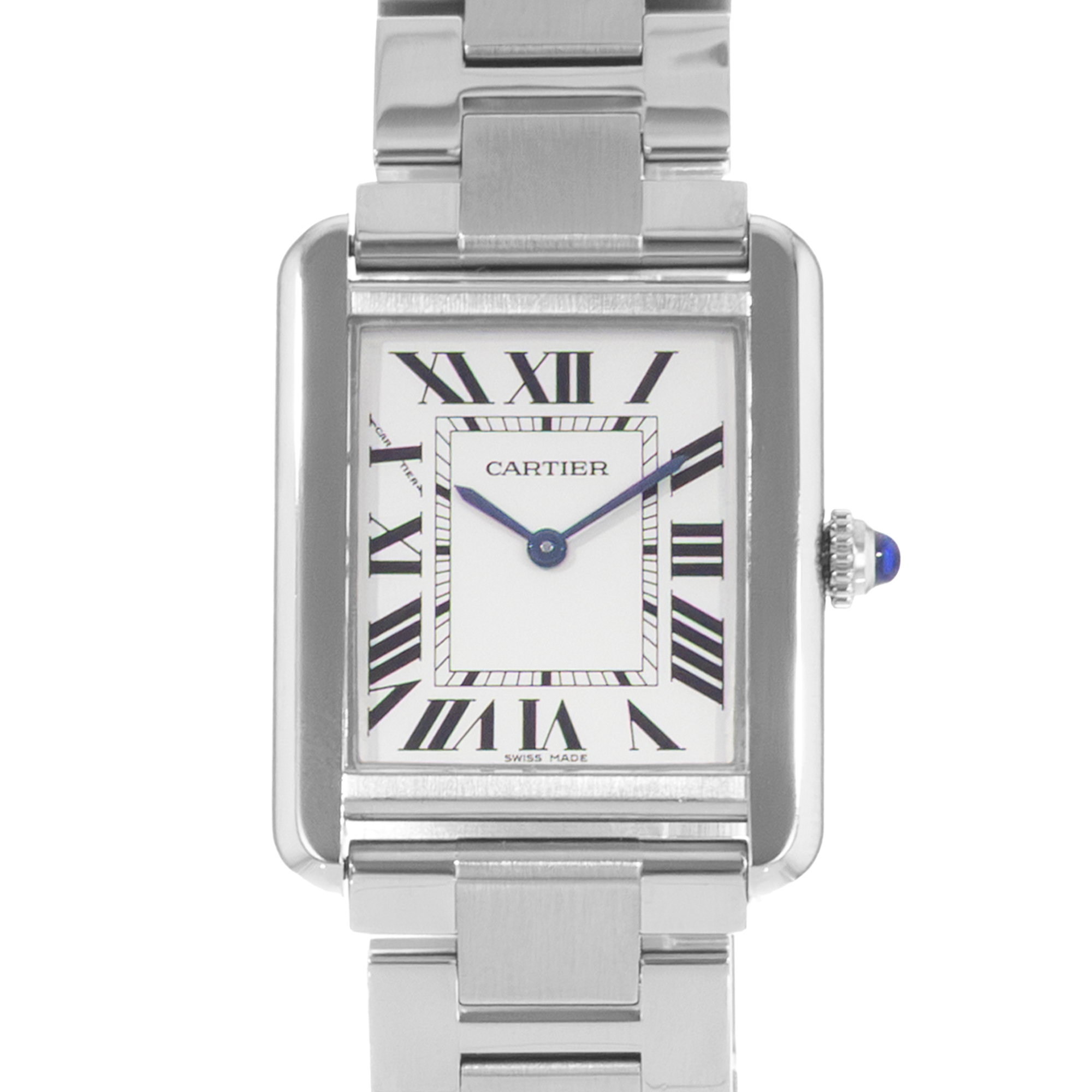This Cartier Tank Solo W5200013 has a silver roman numeral dial and a bracelet strap. This Cartier has undergone a thorough inspection of accuracy, functionality and condition at our Cartier certified service centre to determine the level of reconditioning required to meet our strict standards. It has also been checked against our records to ensure authenticity. All our watches have a 24-month warranty for your peace of mind.