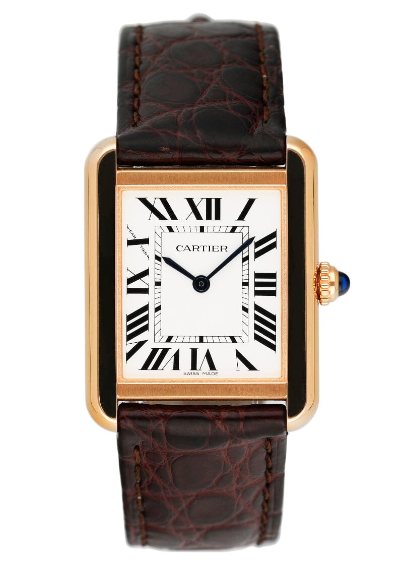This Cartier Tank Solo W5200024 has a silver roman numeral dial and a leather strap. This Cartier has undergone a thorough inspection of accuracy, functionality and condition at our Cartier certified service centre to determine the level of reconditioning required to meet our strict standards. It has also been checked against our records to ensure authenticity. All our watches have a 24-month warranty for your peace of mind.