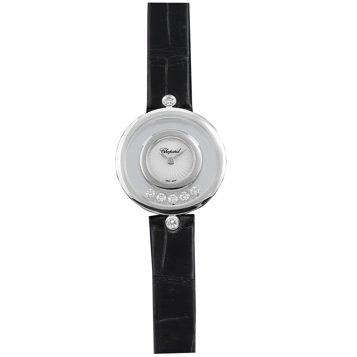 This Chopard Happy Diamonds 209415-1001 has a mother of pearl white - diamond dial and a leather strap. This Chopard has undergone a thorough inspection of water resistance, accuracy, functionality and condition to determine the level of reconditioning required to meet our strict standards. It has also been referenced against technical documents and manufacturer records where available to ensure authenticity and a clean history. All our watches have a 24-month warranty for your peace of mind.