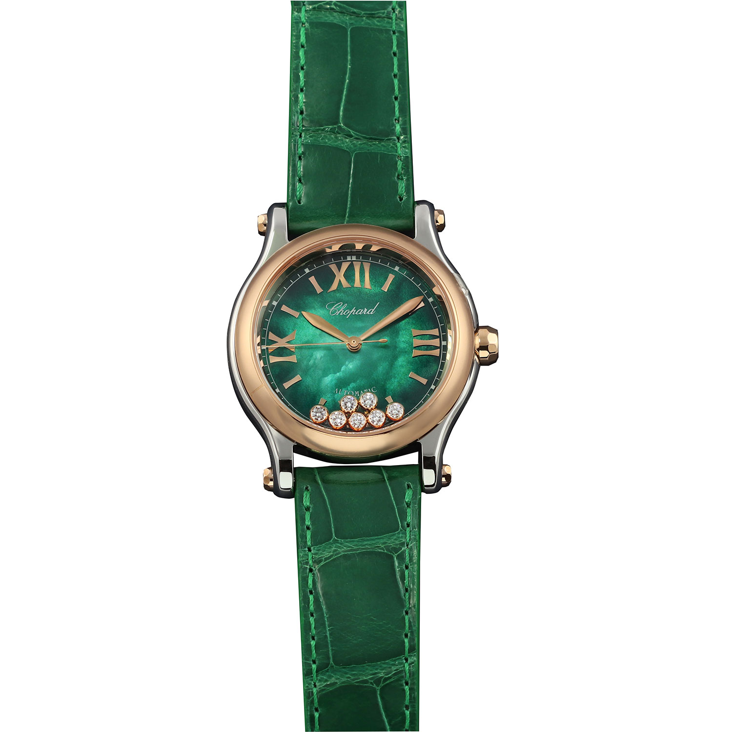 This Chopard Happy Sport 278578-6002 has a green roman numeral diamond dial and a leather strap. This Chopard has undergone a thorough inspection of water resistance, accuracy, functionality and condition to determine the level of reconditioning required to meet our strict standards. It has also been referenced against technical documents and manufacturer records where available to ensure authenticity and a clean history. All our watches have a 24-month warranty for your peace of mind.