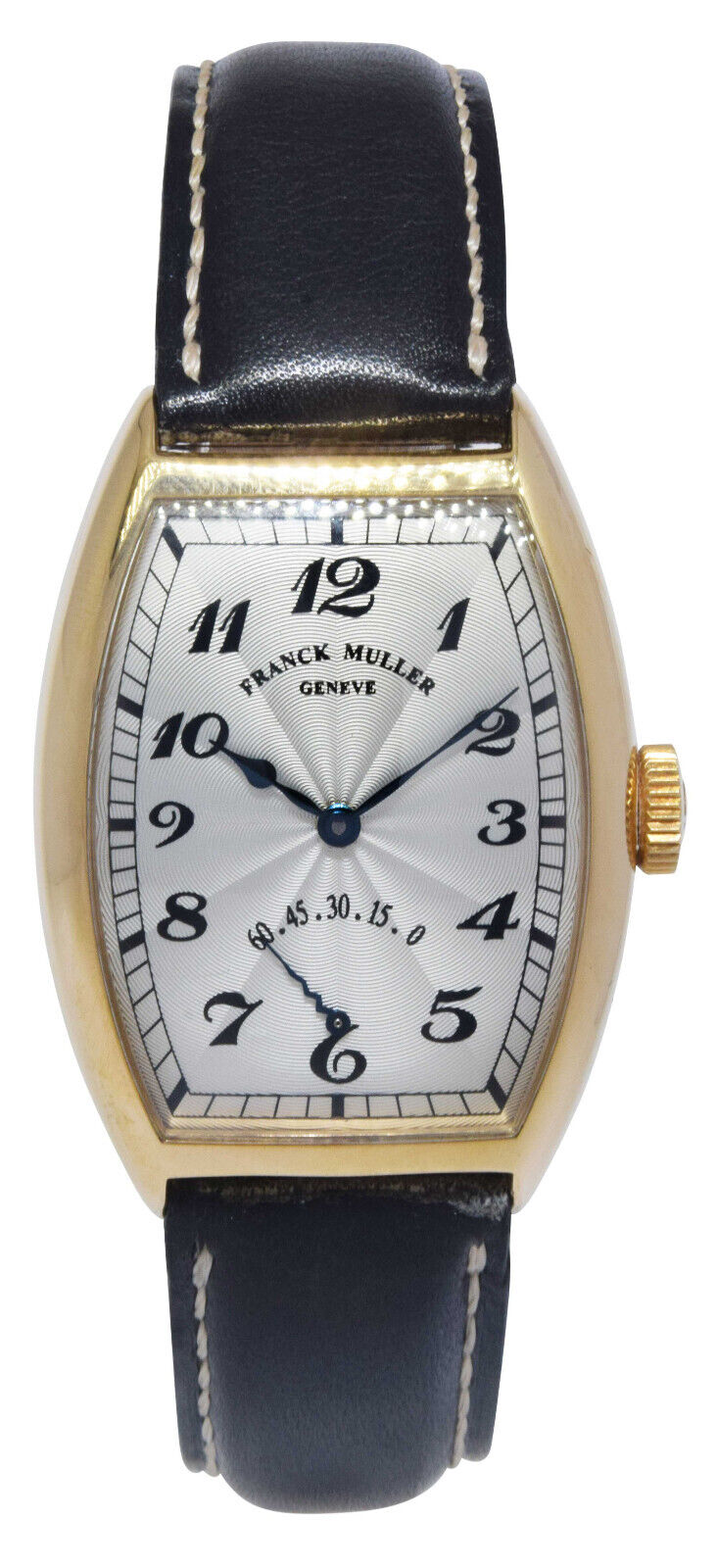 This Franck Muller Cintree Curvex 5850 Vegas has a silver arabic dial and a leather strap. This Franck Muller has undergone a thorough inspection of water resistance, accuracy, functionality and condition to determine the level of reconditioning required to meet our strict standards. It has also been referenced against technical documents and manufacturer records where available to ensure authenticity and a clean history. All our watches have a 24-month warranty for your peace of mind.