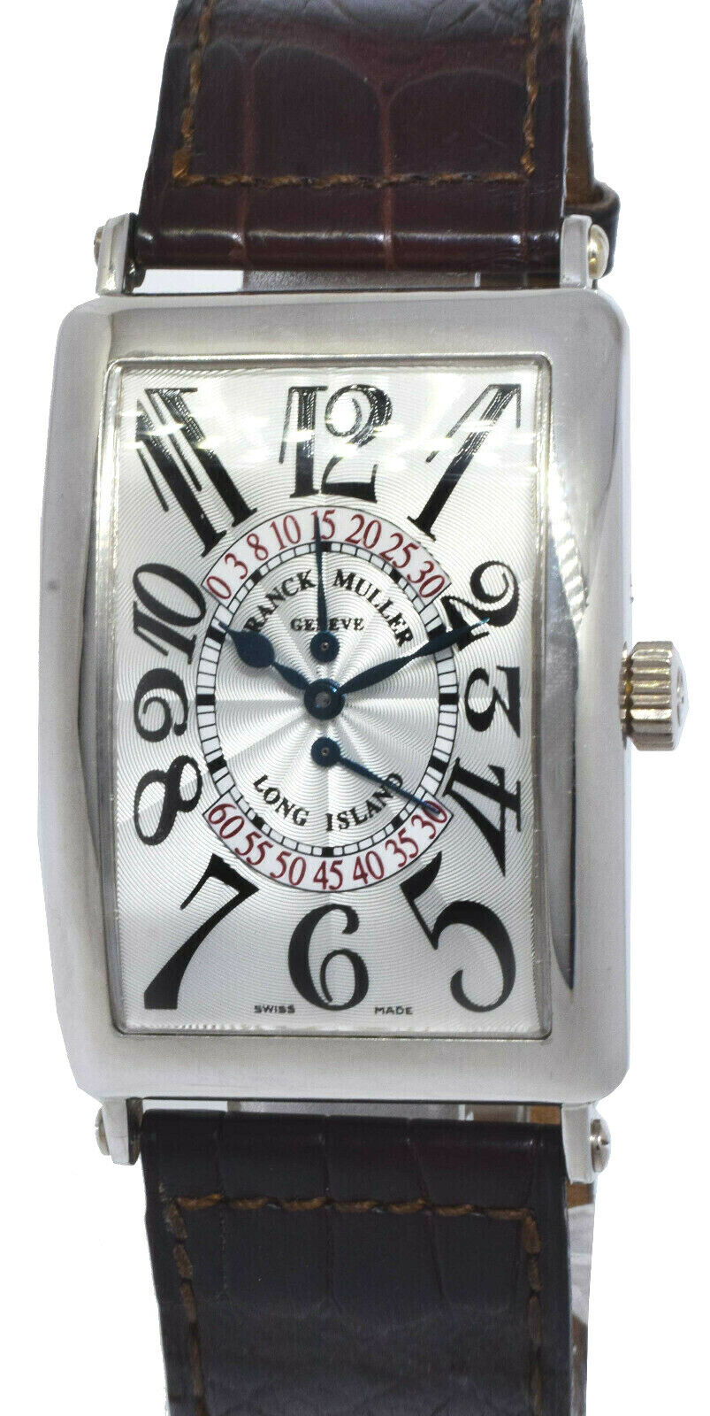 This Franck Muller Long Island 1100 DS R has a black arabic dial and a leather strap. This Franck Muller has undergone a thorough inspection of water resistance, accuracy, functionality and condition to determine the level of reconditioning required to meet our strict standards. It has also been referenced against technical documents and manufacturer records where available to ensure authenticity and a clean history. All our watches have a 24-month warranty for your peace of mind.