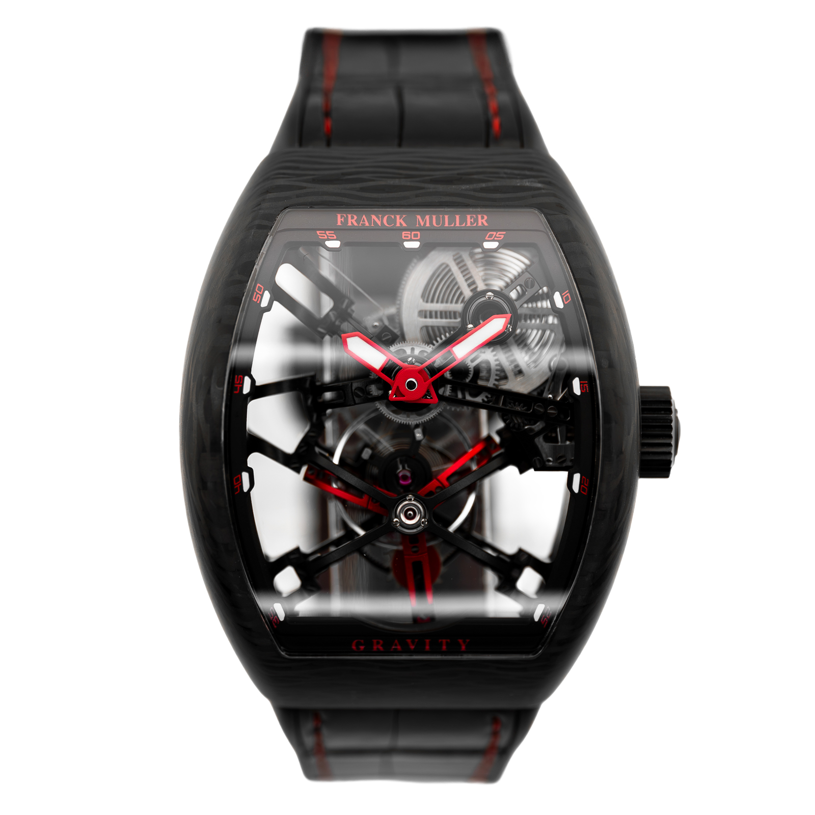This Franck Muller Vanguard V 45 T GR CS SQT BR has a skeleton dial and a leather strap. This Franck Muller has undergone a thorough inspection of water resistance, accuracy, functionality and condition to determine the level of reconditioning required to meet our strict standards. It has also been referenced against technical documents and manufacturer records where available to ensure authenticity and a clean history. All our watches have a 24-month warranty for your peace of mind.