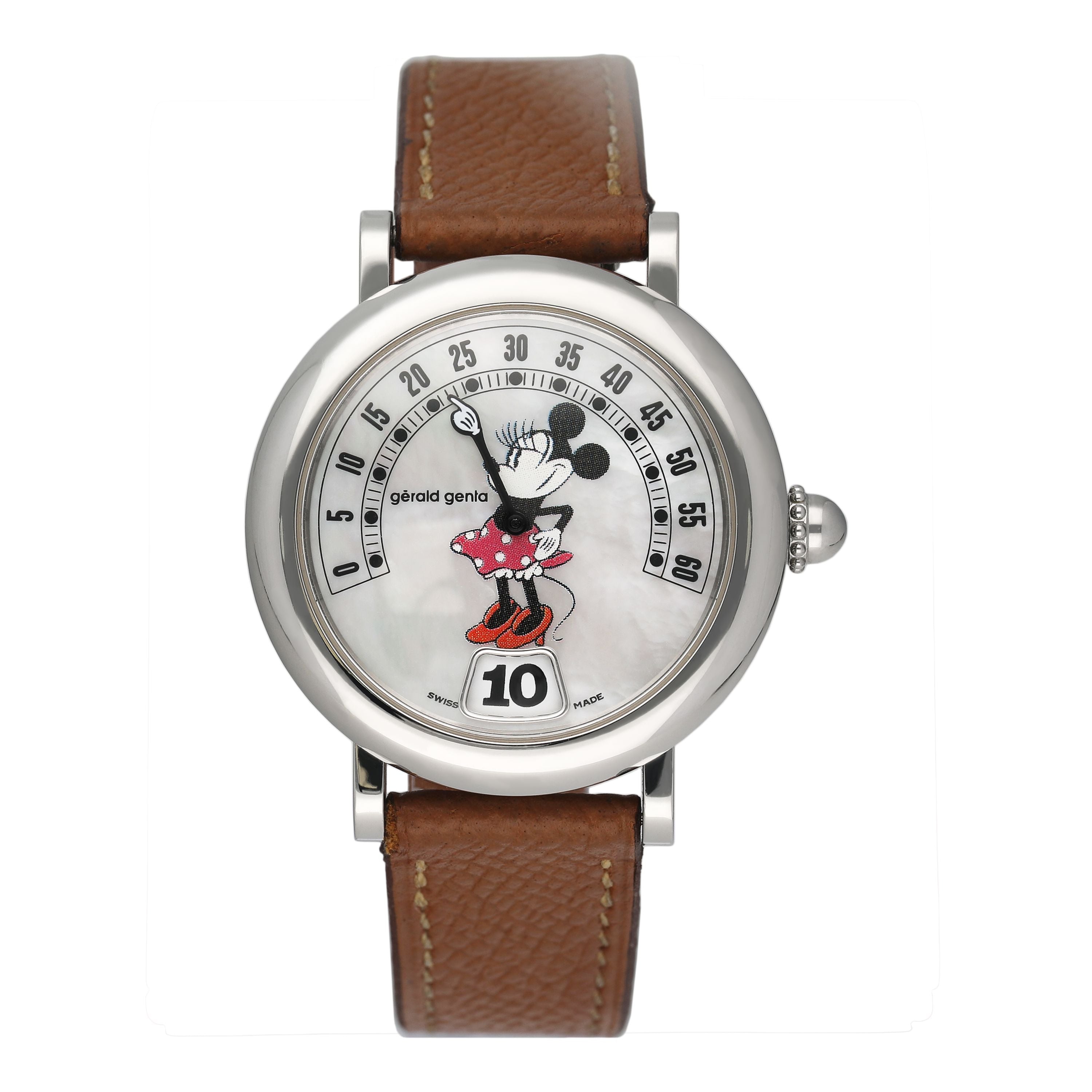 This Gerald Genta Retro Fantasy G.3612.7 has a mother of pearl white dial and a leather strap. This Gerald Genta has undergone a thorough inspection of accuracy, functionality and condition to determine the level of reconditioning required to meet our strict standards. It has also been referenced against technical documents and manufacturer records where available to ensure authenticity and a clean history. All our watches have a 24-month warranty for your peace of mind.