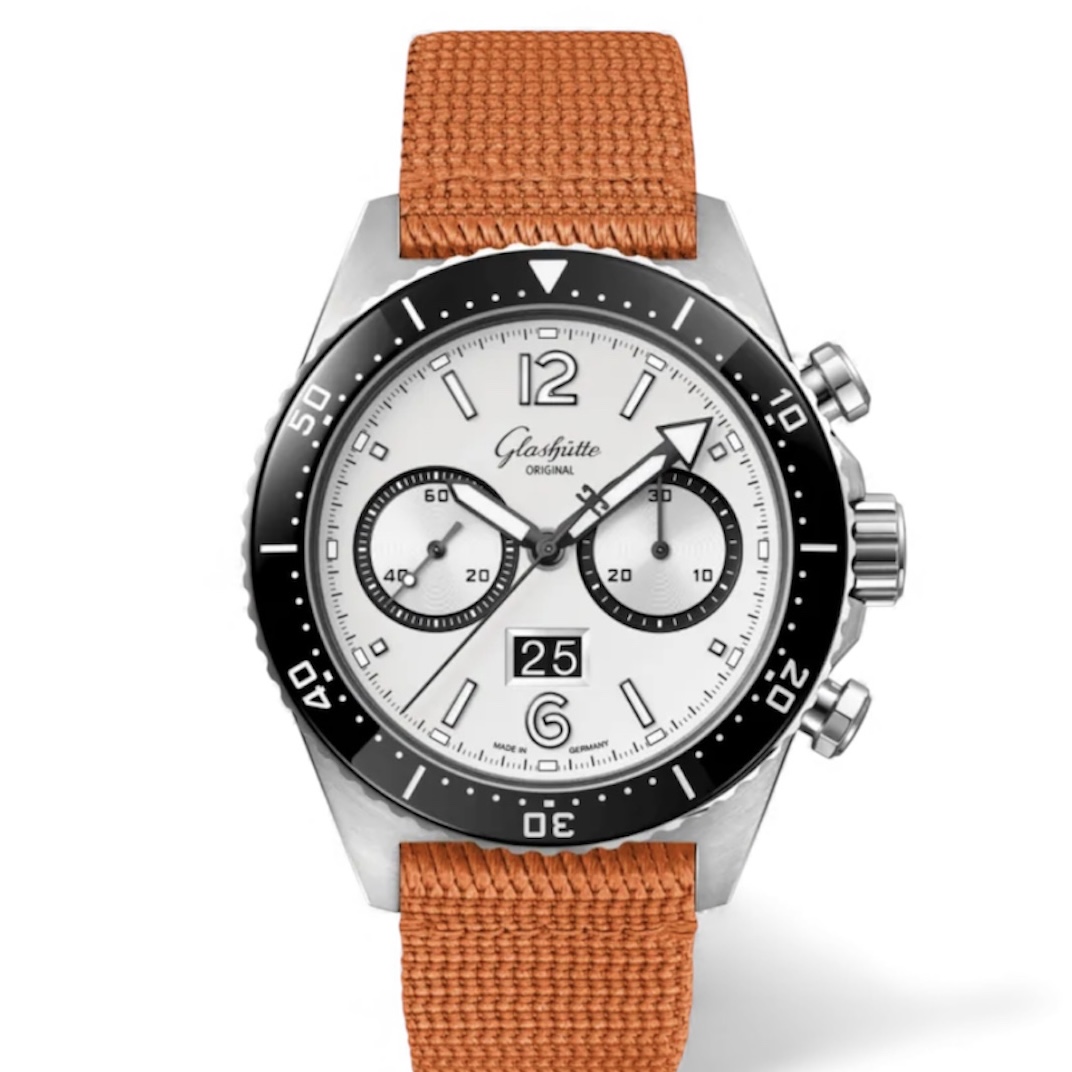 This Glashutte Original SeaQ 1-37-23-03-80-33 has a silver dial and a fabric strap. This Glashutte Original has undergone a thorough inspection of water resistance, accuracy, functionality and condition to determine the level of reconditioning required to meet our strict standards. It has also been referenced against technical documents and manufacturer records where available to ensure authenticity and a clean history. Our watches have a 24-month warranty for your peace of mind, in conjunction with any remaining manufacturer’s warranty from new or from service.