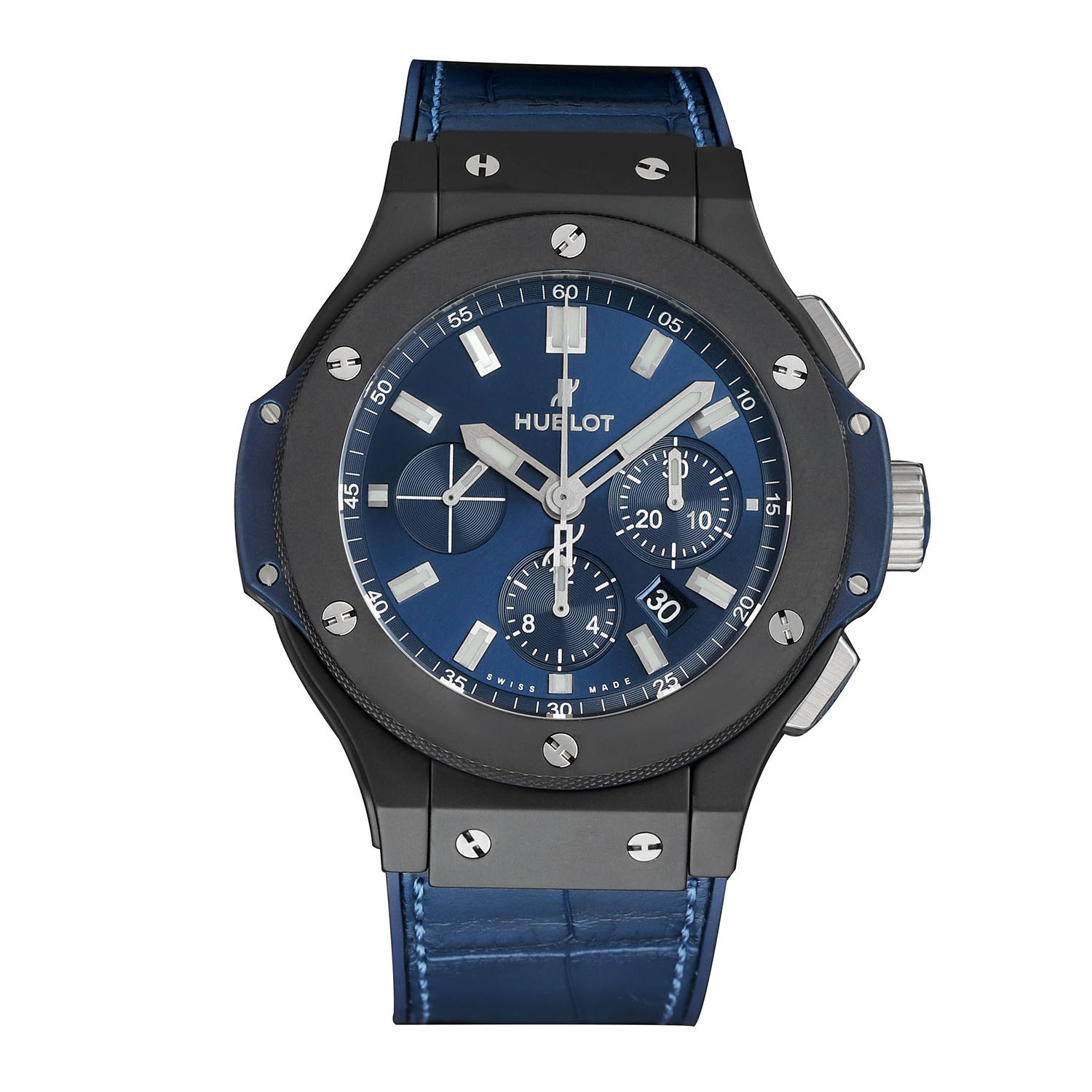 This Hublot Big Bang 301.CI.7170.LR has a blue baton dial and a leather strap. This Hublot has undergone a thorough inspection of water resistance, accuracy, functionality and condition to determine the level of reconditioning required to meet our strict standards. It has also been referenced against technical documents and manufacturer records where available to ensure authenticity and a clean history. All our watches have a 24-month warranty for your peace of mind.