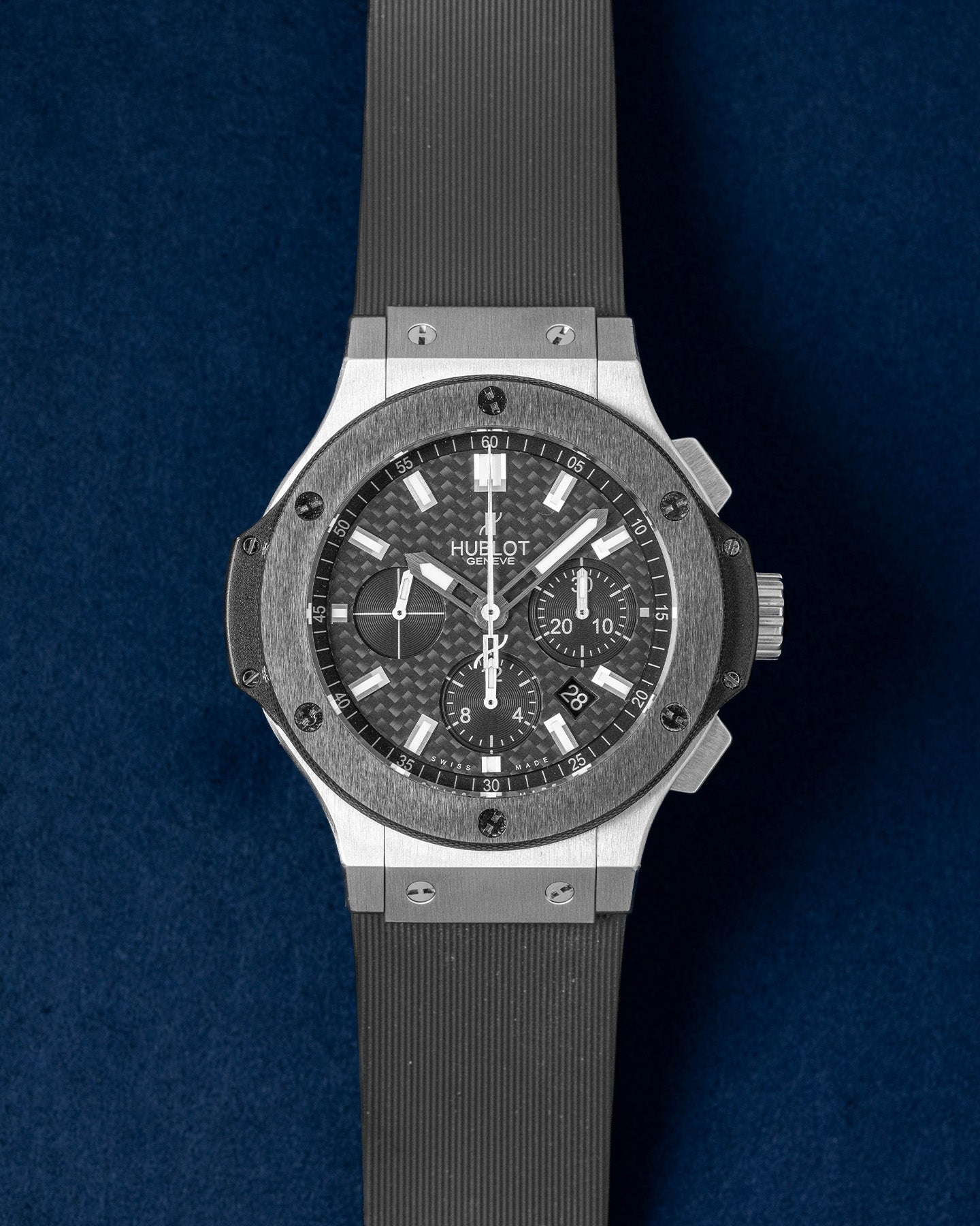 This Hublot Big Bang 301.SM.1770.RX has a black baton dial and a rubber strap. This Hublot has undergone a thorough inspection of water resistance, accuracy, functionality and condition to determine the level of reconditioning required to meet our strict standards. It has also been referenced against technical documents and manufacturer records where available to ensure authenticity and a clean history. All our watches have a 24-month warranty for your peace of mind.
