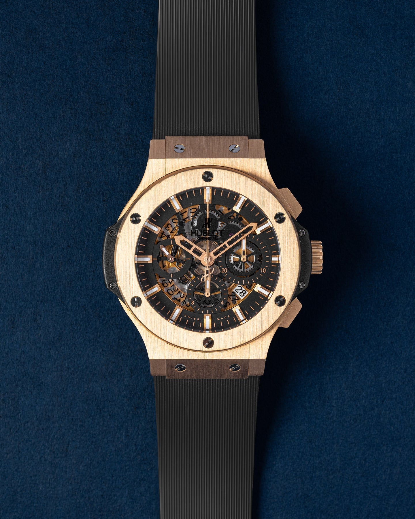 This Hublot Big Bang 311.PX.1180.RX has a black baton dial and a rubber strap. This Hublot has undergone a thorough inspection of water resistance, accuracy, functionality and condition to determine the level of reconditioning required to meet our strict standards. It has also been referenced against technical documents and manufacturer records where available to ensure authenticity and a clean history. All our watches have a 24-month warranty for your peace of mind.