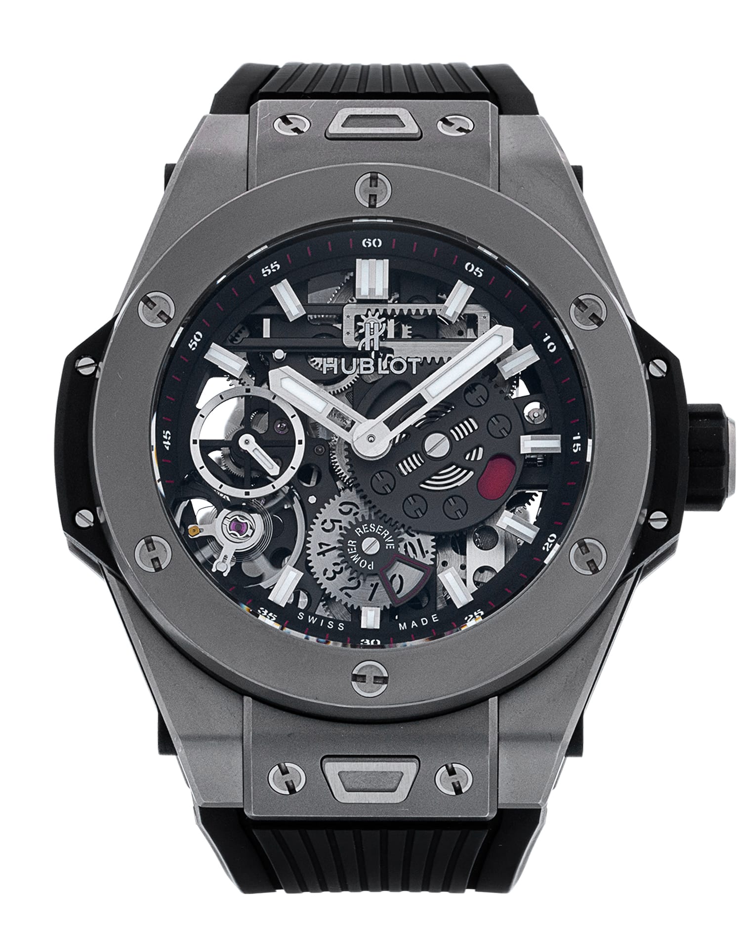 This Hublot Big Bang 414.NI.1123.RX has a skeleton dial and a rubber strap. This Hublot has undergone a thorough inspection of water resistance, accuracy, functionality and condition to determine the level of reconditioning required to meet our strict standards. It has also been referenced against technical documents and manufacturer records where available to ensure authenticity and a clean history. Our watches have a 24-month warranty for your peace of mind, in conjunction with any remaining manufacturer’s warranty from new or from service.