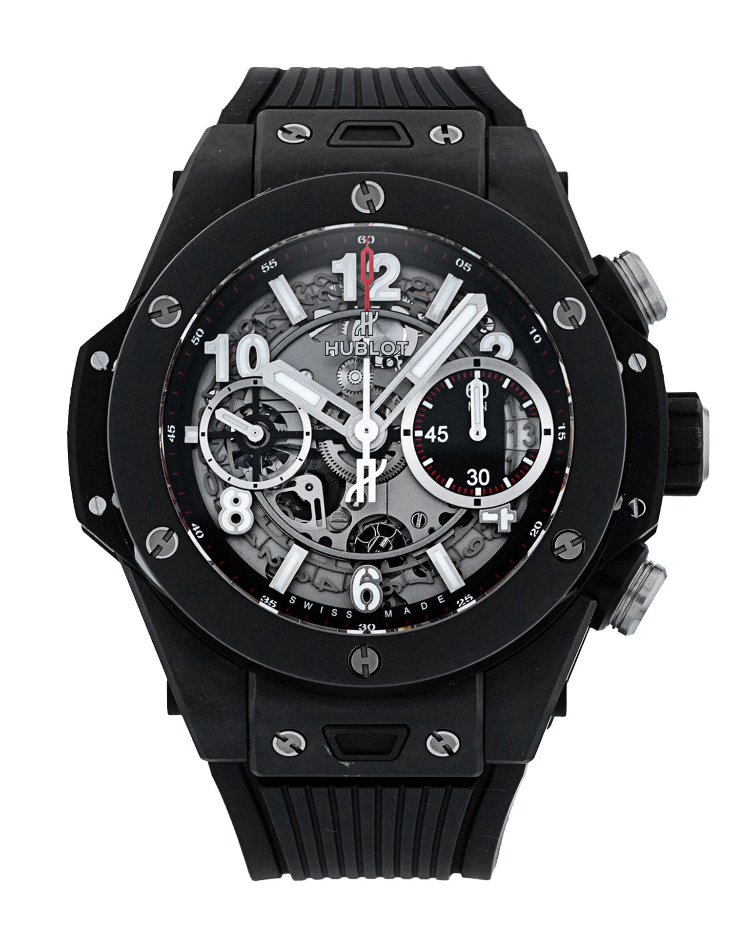 This Hublot Big Bang 441.CI.1170.RX has a skeleton dial and a rubber strap. This Hublot has undergone a thorough inspection of water resistance, accuracy, functionality and condition to determine the level of reconditioning required to meet our strict standards. It has also been referenced against technical documents and manufacturer records where available to ensure authenticity and a clean history. All our watches have a 24-month warranty for your peace of mind.