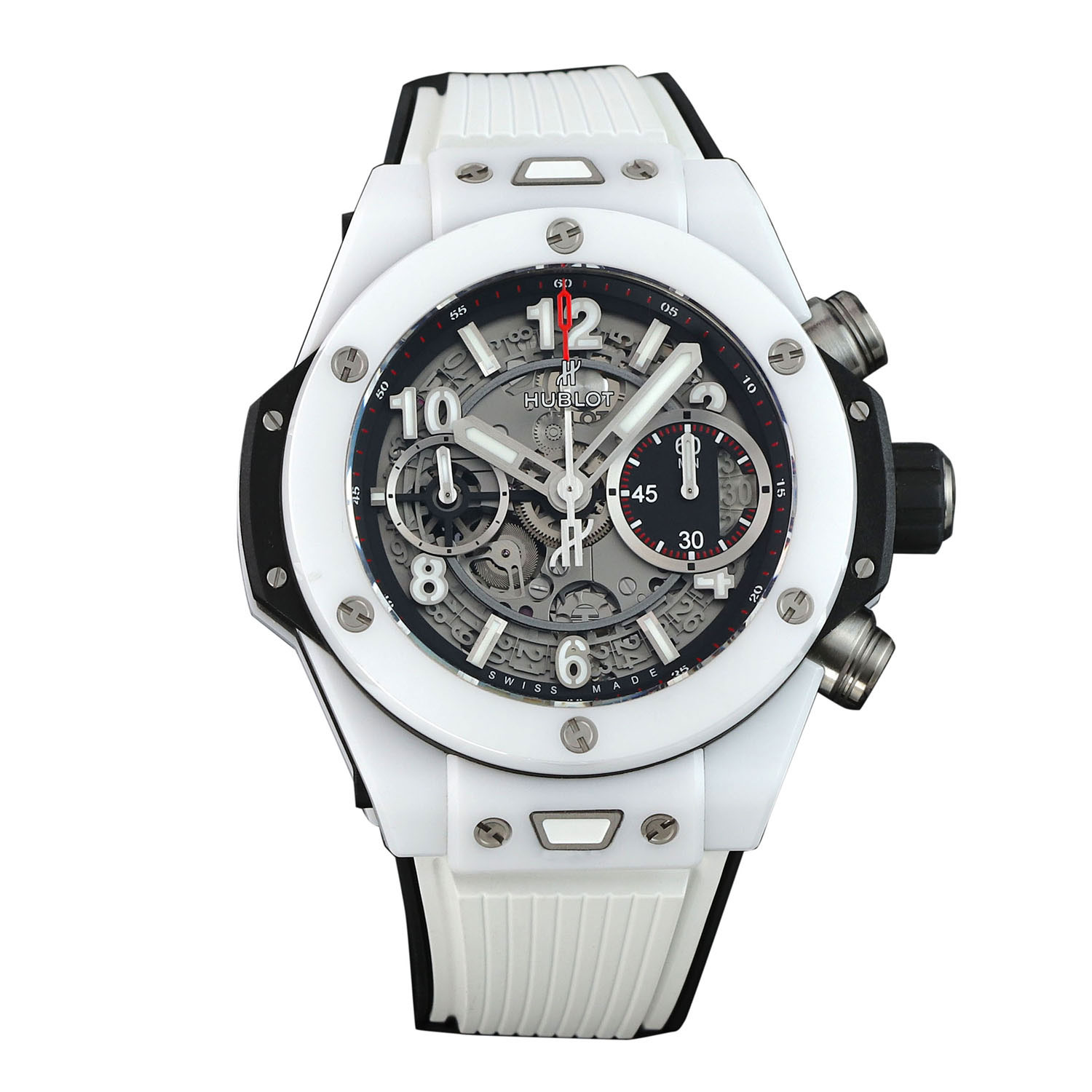 This Hublot Big Bang 441.HX.1171.RX has a skeleton dial and a rubber strap. This Hublot has undergone a thorough inspection of water resistance, accuracy, functionality and condition to determine the level of reconditioning required to meet our strict standards. It has also been referenced against technical documents and manufacturer records where available to ensure authenticity and a clean history. All our watches have a 24-month warranty for your peace of mind.