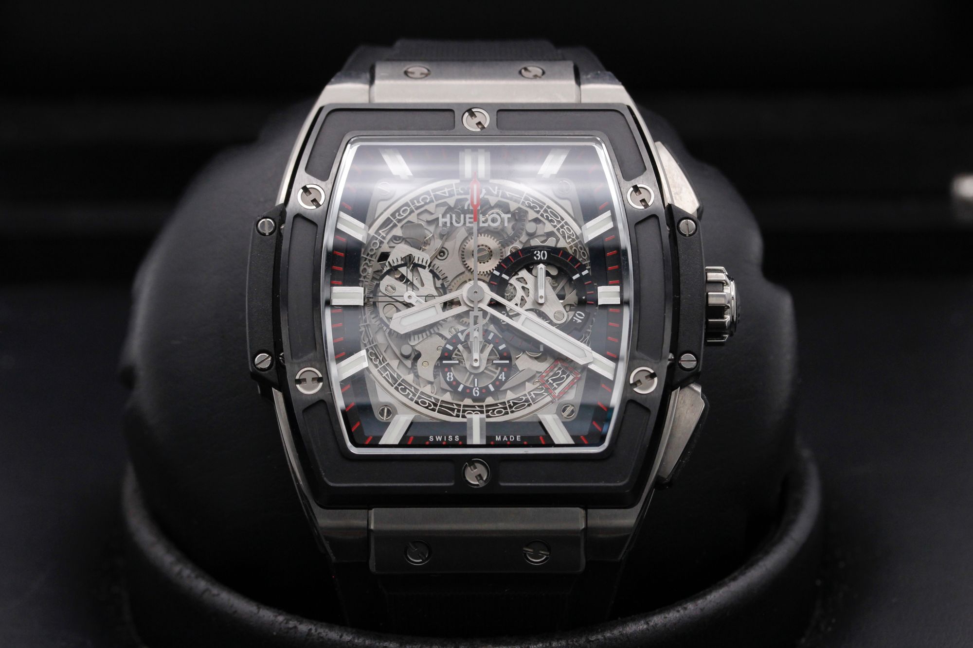 This Hublot Big Bang 641.NM.0173.LR has a skeleton dial and a rubber strap. This Hublot has undergone a thorough inspection of water resistance, accuracy, functionality and condition to determine the level of reconditioning required to meet our strict standards. It has also been referenced against technical documents and manufacturer records where available to ensure authenticity and a clean history. All our watches have a 24-month warranty for your peace of mind.