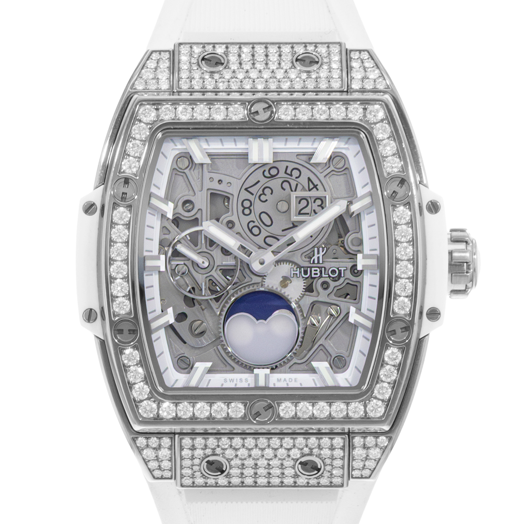 This Hublot Big Bang 647.NE.2070.RW.1604 has a skeleton dial and a leather strap. This Hublot has undergone a thorough inspection of water resistance, accuracy, functionality and condition to determine the level of reconditioning required to meet our strict standards. It has also been referenced against technical documents and manufacturer records where available to ensure authenticity and a clean history. All our watches have a 24-month warranty for your peace of mind.