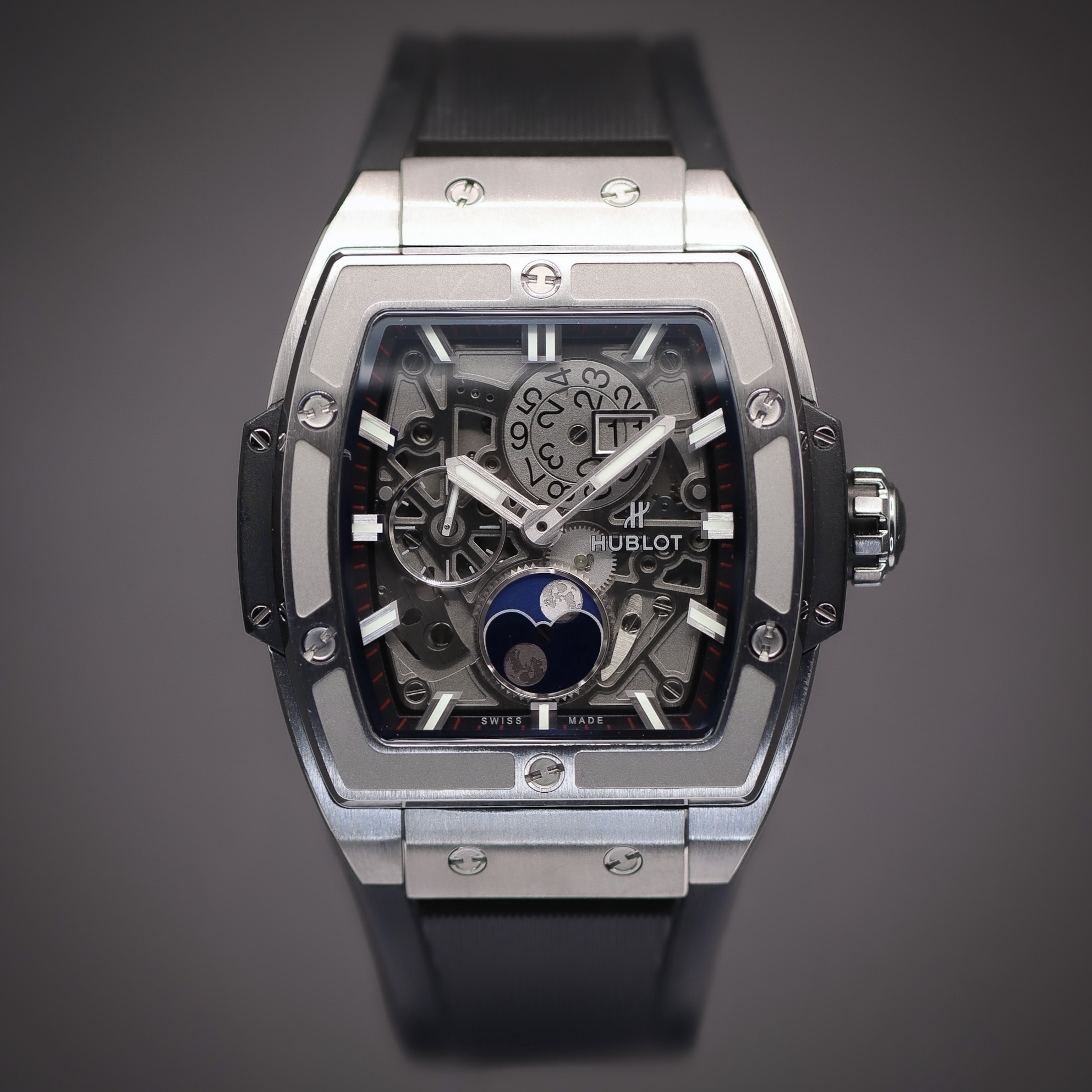 This Hublot Big Bang 647.NX.1137.RX has a skeleton dial and a rubber strap. This Hublot has undergone a thorough inspection of water resistance, accuracy, functionality and condition to determine the level of reconditioning required to meet our strict standards. It has also been referenced against technical documents and manufacturer records where available to ensure authenticity and a clean history. All our watches have a 24-month warranty for your peace of mind.
