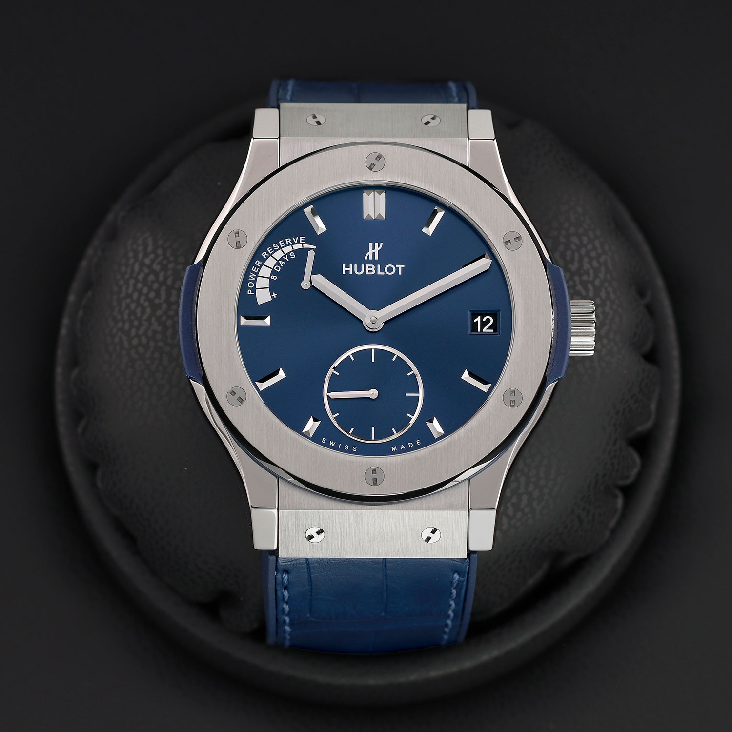 This Hublot Classic Fusion 516.NX.1470.LR has a black baton dial and a leather strap. This Hublot has undergone a thorough inspection of water resistance, accuracy, functionality and condition to determine the level of reconditioning required to meet our strict standards. It has also been referenced against technical documents and manufacturer records where available to ensure authenticity and a clean history. All our watches have a 24-month warranty for your peace of mind.
