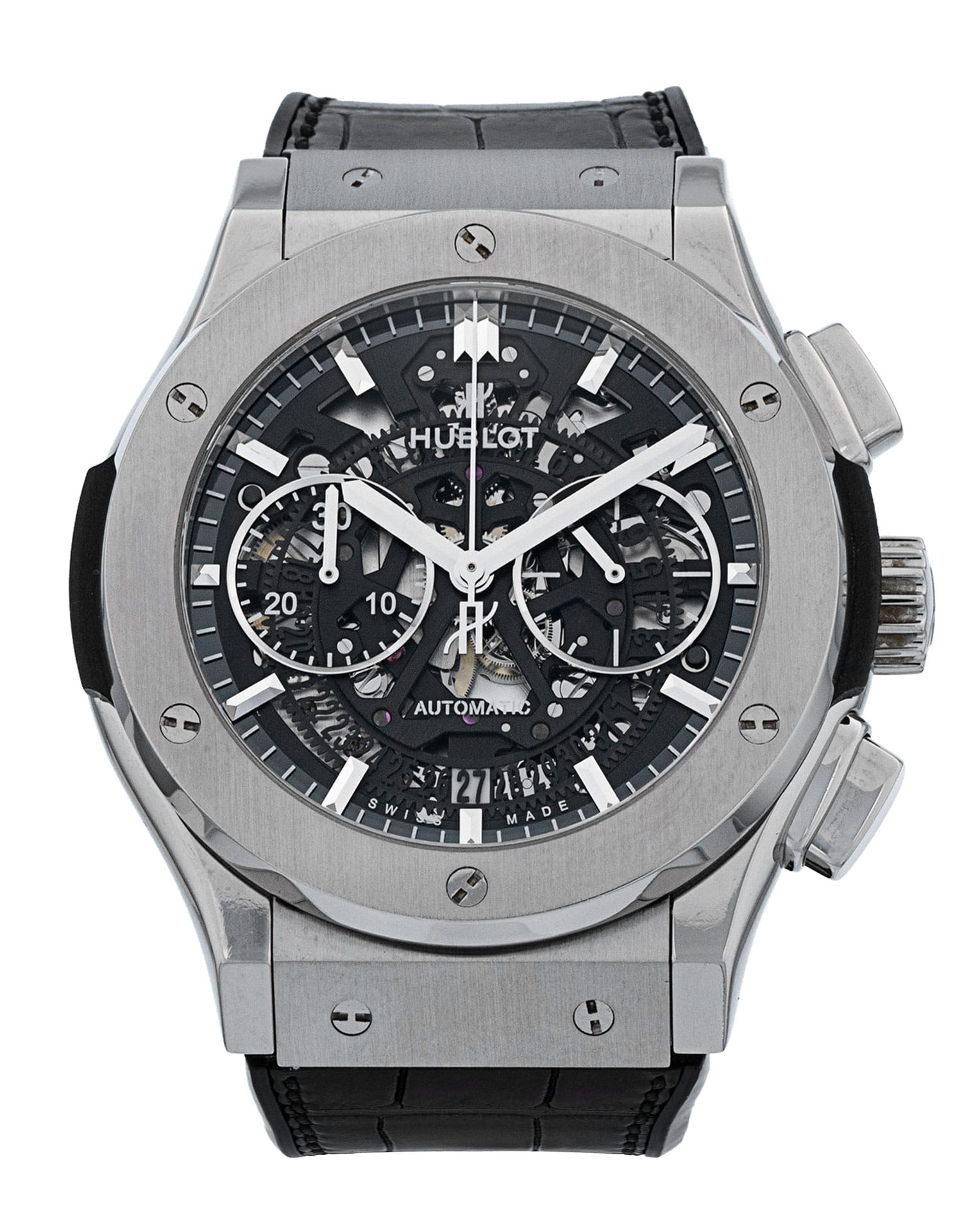 This Hublot Classic Fusion 525.NX.0170.LR has a skeleton dial and a rubber strap. This Hublot has undergone a thorough inspection of water resistance, accuracy, functionality and condition to determine the level of reconditioning required to meet our strict standards. It has also been referenced against technical documents and manufacturer records where available to ensure authenticity and a clean history. All our watches have a 24-month warranty for your peace of mind.