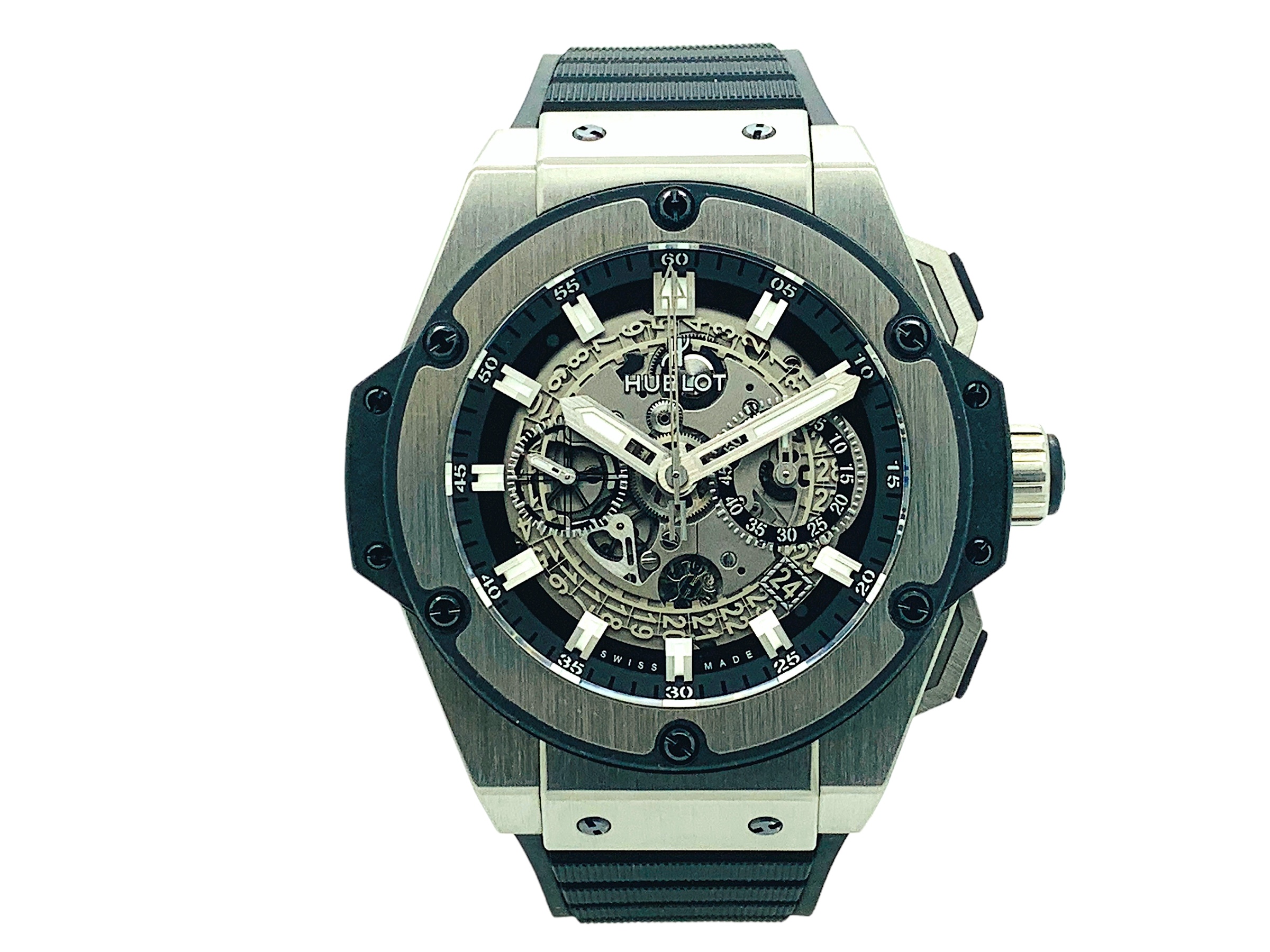 This Hublot King Power 701.NX.0170.RX has a skeleton dial and a rubber strap. This Hublot has undergone a thorough inspection of water resistance, accuracy, functionality and condition to determine the level of reconditioning required to meet our strict standards. It has also been referenced against technical documents and manufacturer records where available to ensure authenticity and a clean history. All our watches have a 24-month warranty for your peace of mind.