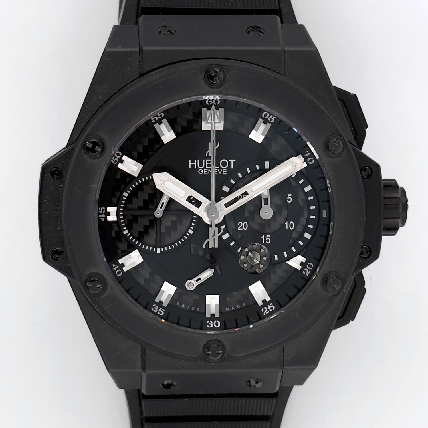 This Hublot King Power 709.CI.1770.RX has a black baton dial and a rubber strap. This Hublot has undergone a thorough inspection of water resistance, accuracy, functionality and condition to determine the level of reconditioning required to meet our strict standards. It has also been referenced against technical documents and manufacturer records where available to ensure authenticity and a clean history. All our watches have a 24-month warranty for your peace of mind.