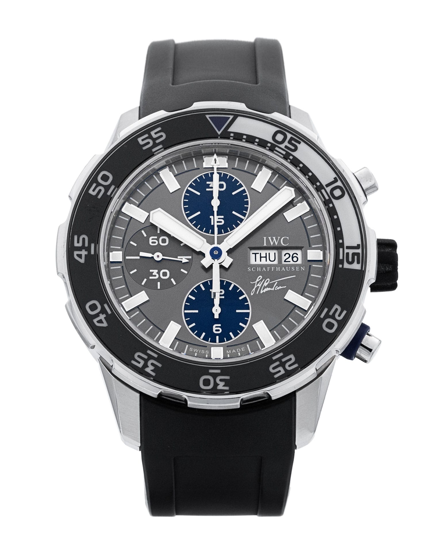 This IWC Aquatimer IW376706 has a grey baton dial and a rubber strap. This IWC has undergone a thorough inspection of accuracy, functionality and condition at our IWC certified service centre to determine the level of reconditioning required to meet our strict standards. It has also been checked against our records to ensure authenticity. All our watches have a 24-month warranty for your peace of mind.