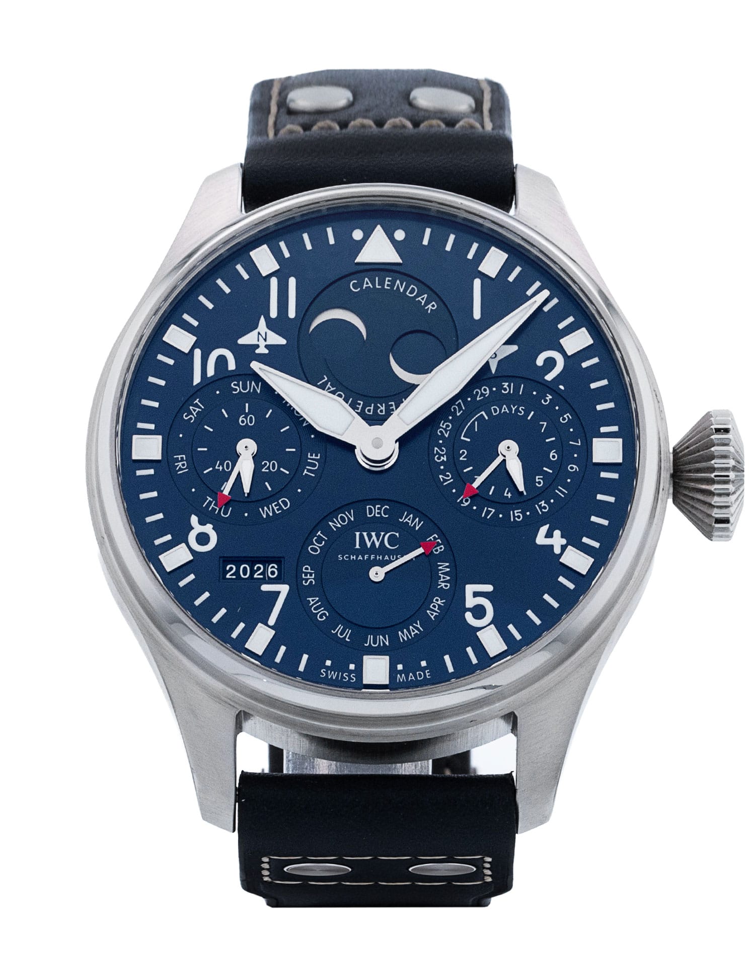 This IWC Big Pilot's IW503605 has a blue arabic dial and a leather strap. This IWC has undergone a thorough inspection of accuracy, functionality and condition at our IWC certified service centre to determine the level of reconditioning required to meet our strict standards. It has also been checked against our records to ensure authenticity. Our watches have a 24-month warranty for your peace of mind, in conjunction with any remaining manufacturer’s warranty from new or from service.