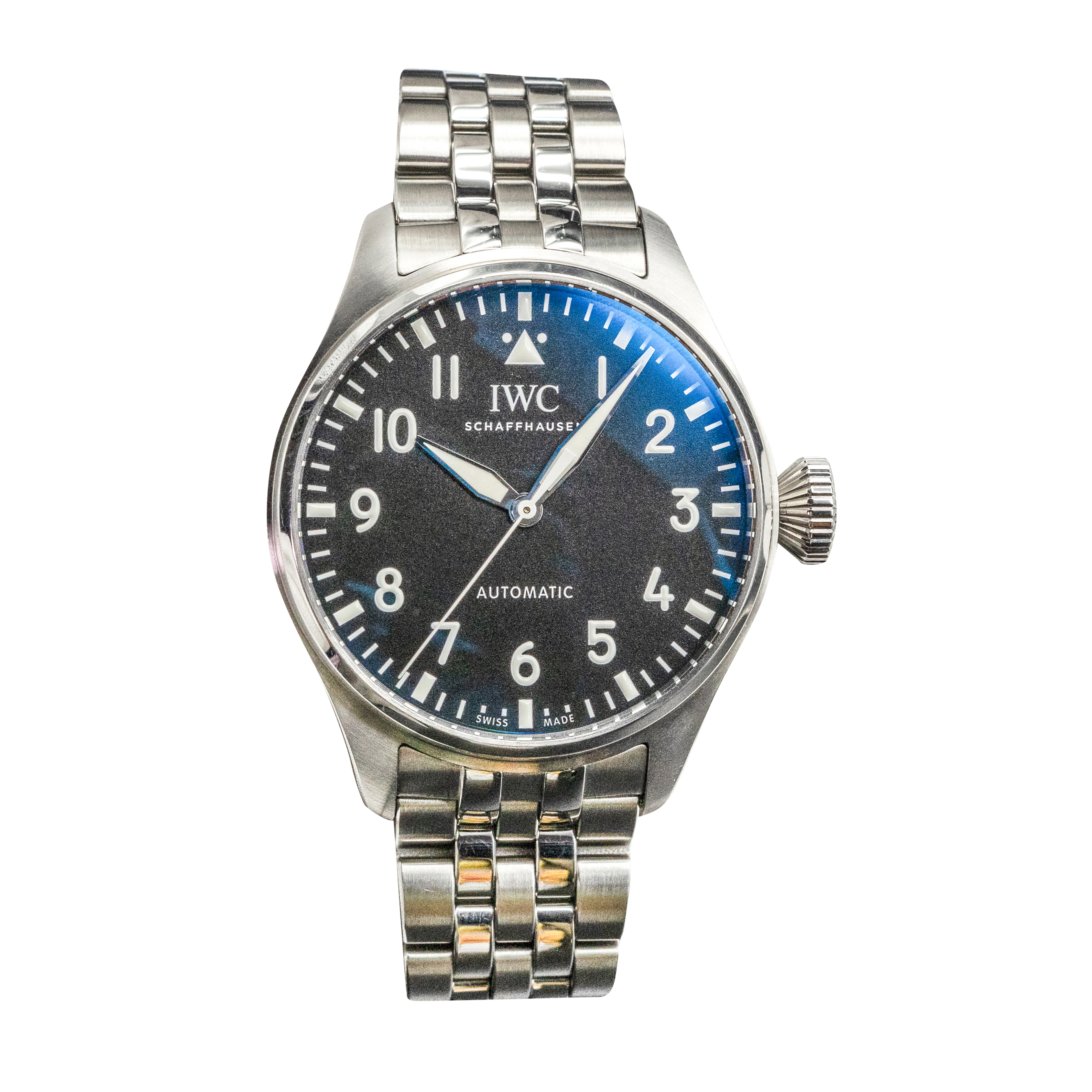 This IWC Big Pilot's IW329301 has a black arabic dial and a bracelet strap. This IWC has undergone a thorough inspection of accuracy, functionality and condition at our IWC certified service centre to determine the level of reconditioning required to meet our strict standards. It has also been checked against our records to ensure authenticity. All our watches have a 24-month warranty for your peace of mind.