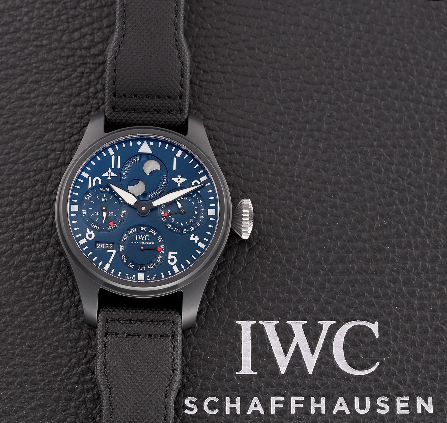 This IWC Big Pilot's IW503001 has a blue arabic dial and a fabric strap. This IWC has undergone a thorough inspection of accuracy, functionality and condition at our IWC certified service centre to determine the level of reconditioning required to meet our strict standards. It has also been checked against our records to ensure authenticity. All our watches have a 24-month warranty for your peace of mind.