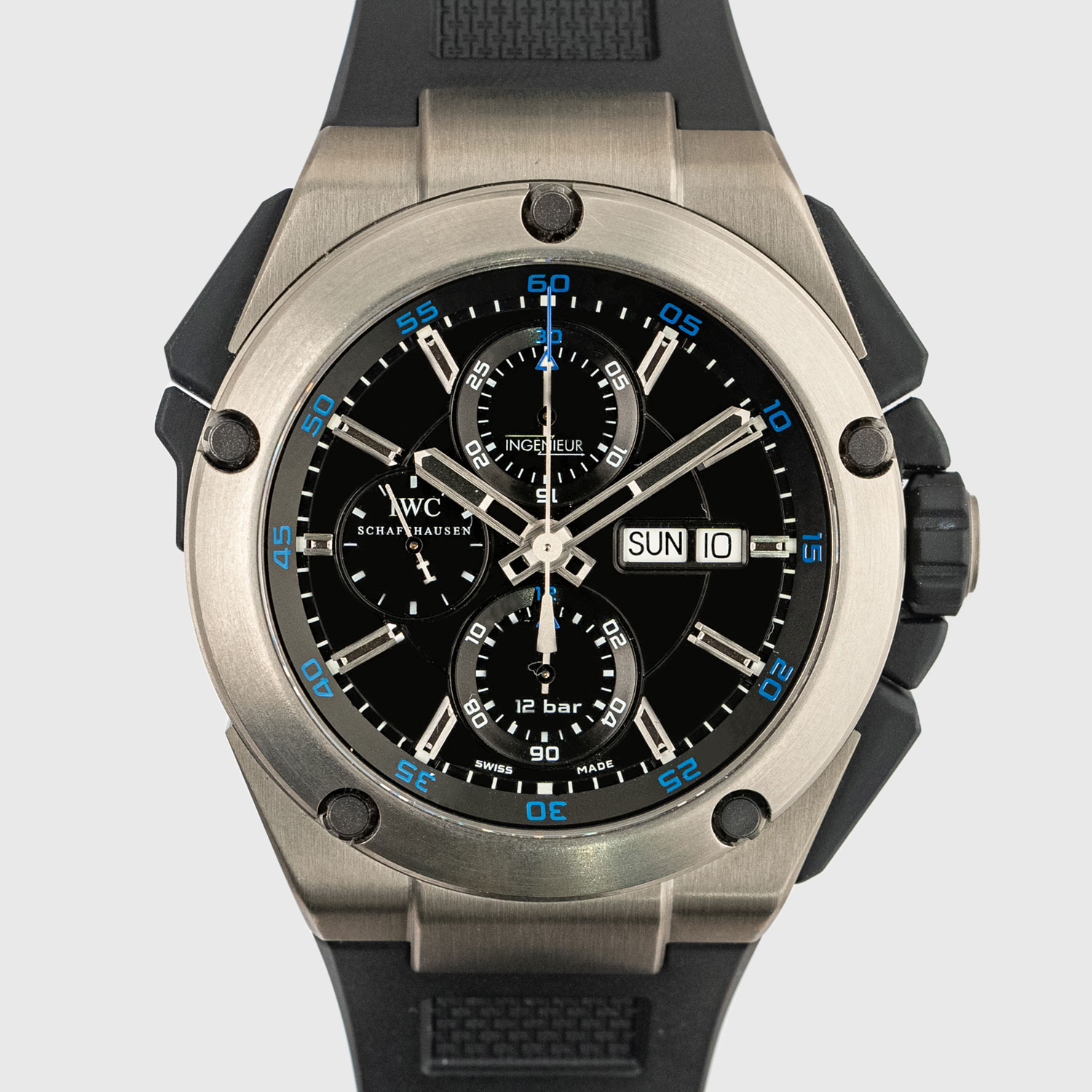 This IWC Ingenieur IW376501 has a black baton dial and a rubber strap. This IWC has undergone a thorough inspection of accuracy, functionality and condition at our IWC certified service centre to determine the level of reconditioning required to meet our strict standards. It has also been checked against our records to ensure authenticity. All our watches have a 24-month warranty for your peace of mind.