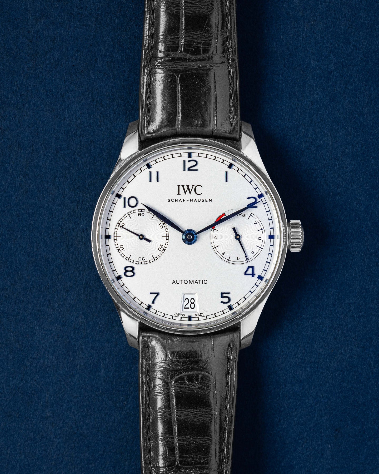 This IWC Portugieser Automatic IW500705 has a silver arabic dial and a leather strap. This IWC has undergone a thorough inspection of accuracy, functionality and condition at our IWC certified service centre to determine the level of reconditioning required to meet our strict standards. It has also been checked against our records to ensure authenticity. All our watches have a 24-month warranty for your peace of mind.