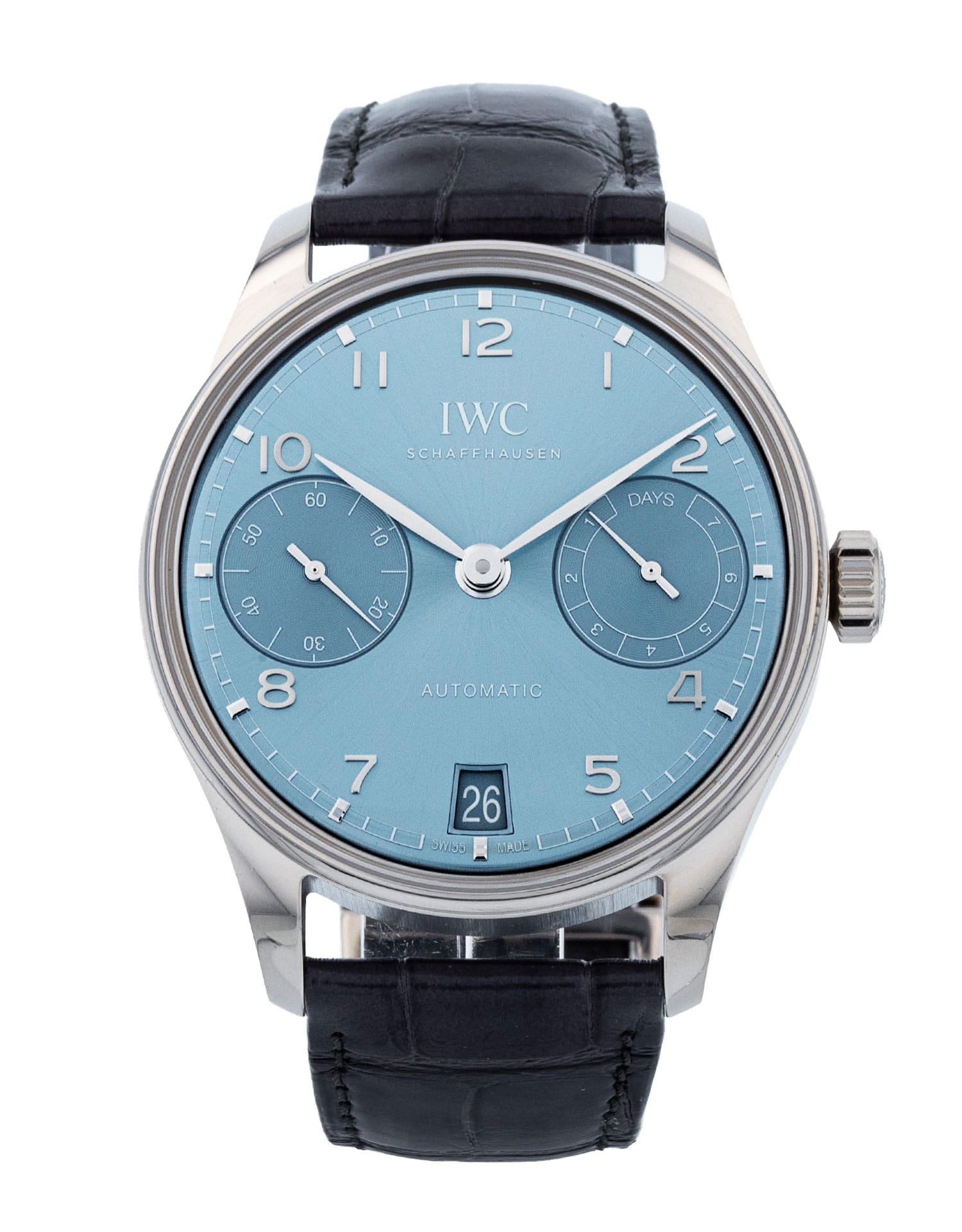 This IWC Portugieser Automatic IW501708 has a blue arabic dial and a leather strap. This IWC has undergone a thorough inspection of accuracy, functionality and condition at our IWC certified service centre to determine the level of reconditioning required to meet our strict standards. It has also been checked against our records to ensure authenticity. Our watches have a 24-month warranty for your peace of mind, in conjunction with any remaining manufacturer’s warranty from new or from service.